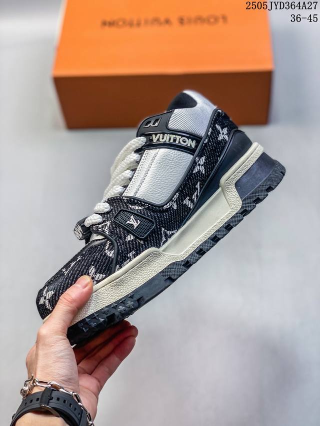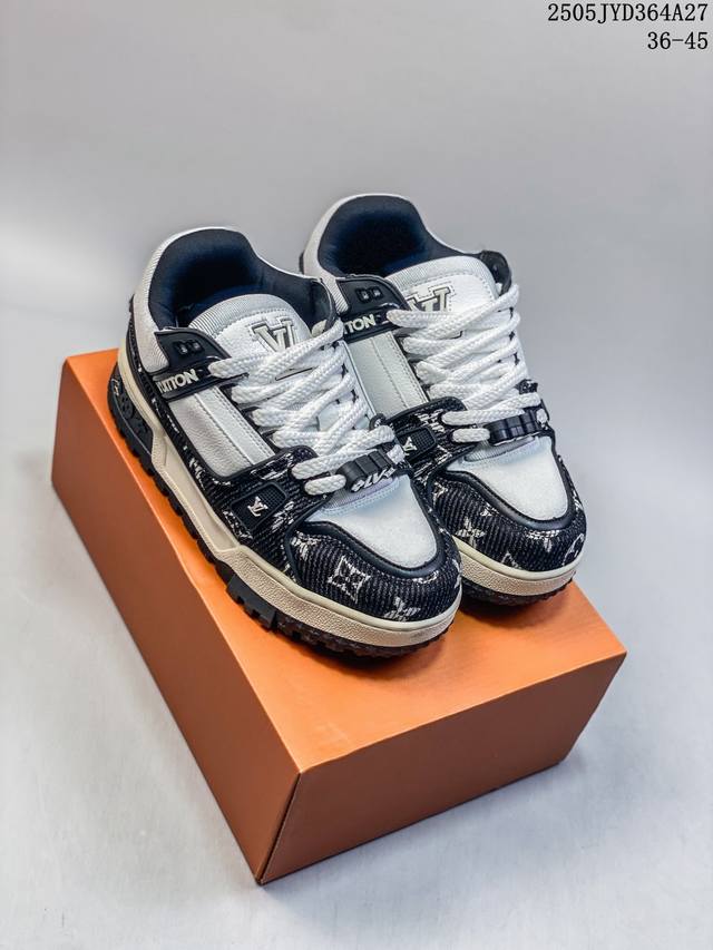 公司级 Ultra版 Lv新版本硬货来袭 全部打空胶 1:1细节复刻 原鞋比例克重 全套原装礼盒包装 真标 性价比天花板 加质不加价 天猫等链接直播追求品质专供 路易威登 Louis Vuitton Lv 时尚运动鞋 潮厚底增高鞋 舒适防滑底和百搭性霸屏整个时尚娱乐圈 细节调整完美主义 鞋面采用柔软皮革鞋面 独家开模大底 侧边采用3D打印标志性Logo 尽显贵族时尚气息 配带正品全套包装 全新Lv路易威登Louis Vuitton Trainer Sneaker Low 休闲运动文化百搭