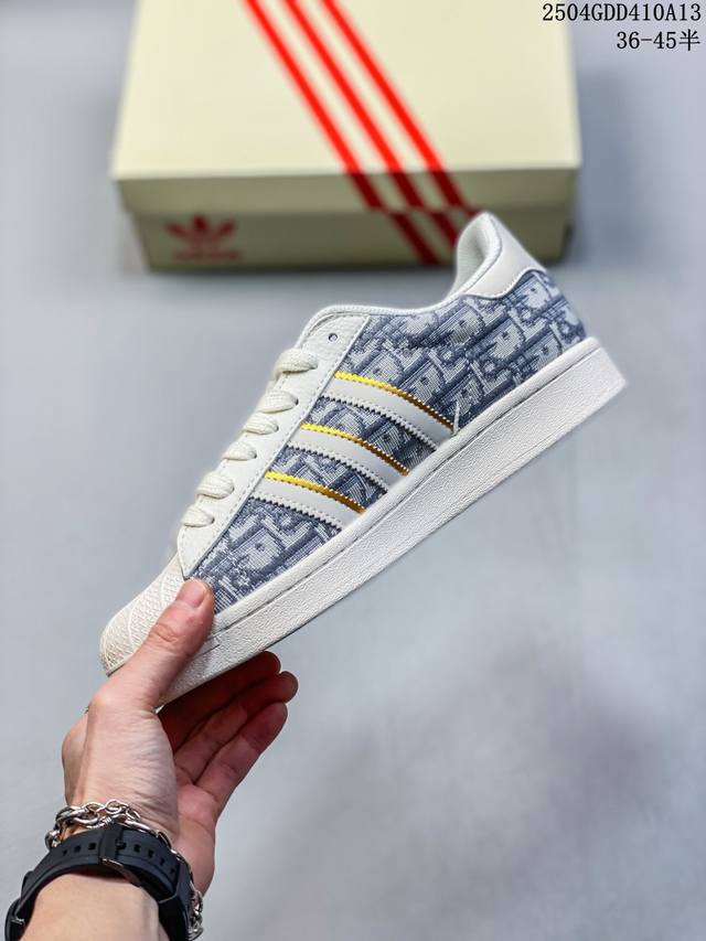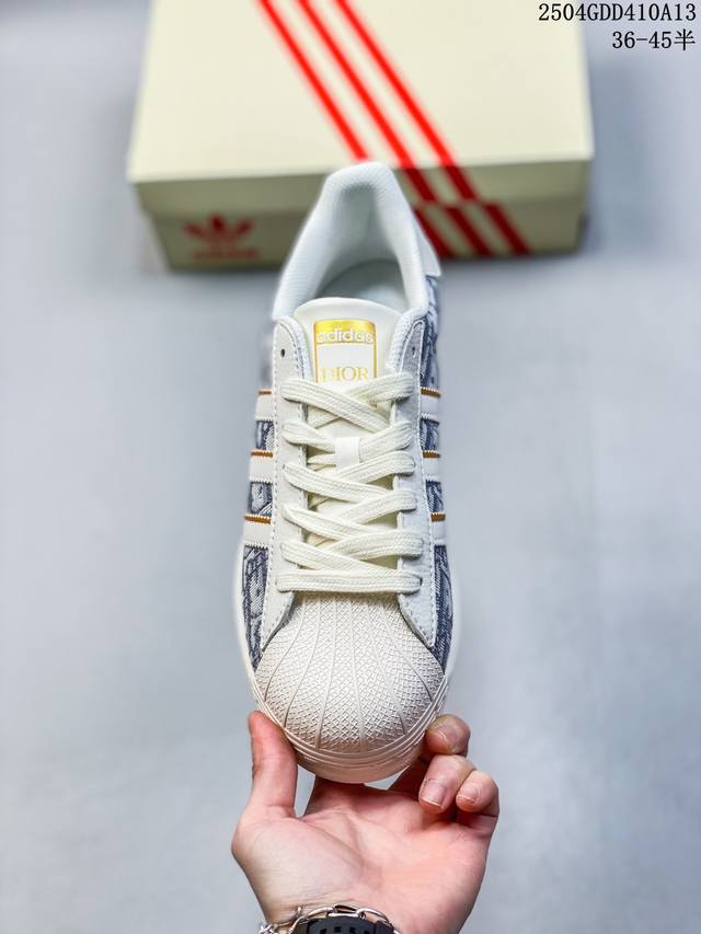 纯原 Clot X Ad Originals Superstar “金标” #贝壳头Lv限定 贴合柔软皮料米白蓝印花经典配色 ,这其中也包括我们非常熟知的Clot。Clot为即将到来的蛇年准备的是一双与Adidas Originals联手打造的。这双鞋的整体设计思路和风格可以说很Clot。鞋款整体选用了易穿搭的白色作为主色调,而加厚的锯齿形外底以及标志性的贝壳头无疑把鞋款的独特属性进一步展现出来。
