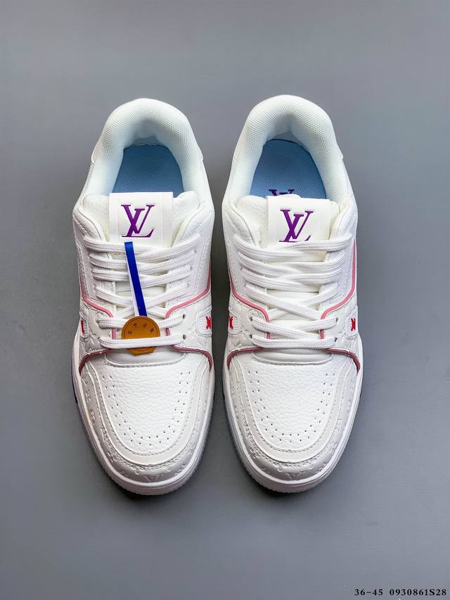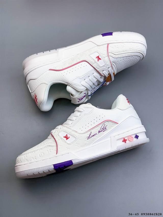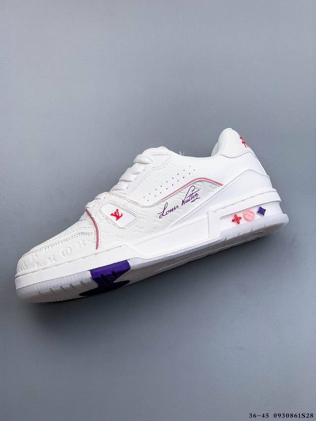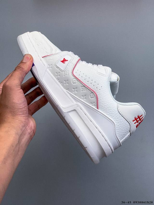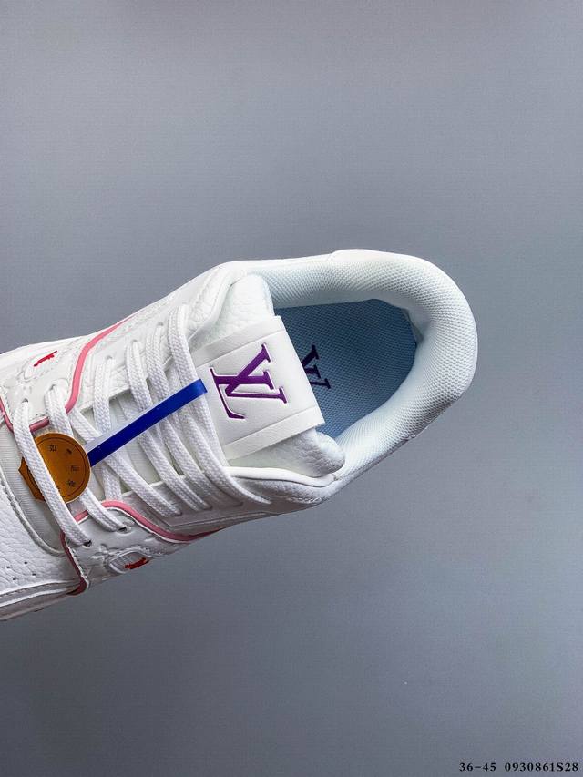 公司级路易威登 Louis Vuitton Lv 2.0路易威登板鞋 二代 拼接皮革 内嵌式绑带 新款 Lv Trainer最新配色运动鞋 L家 篮球鞋风格运动