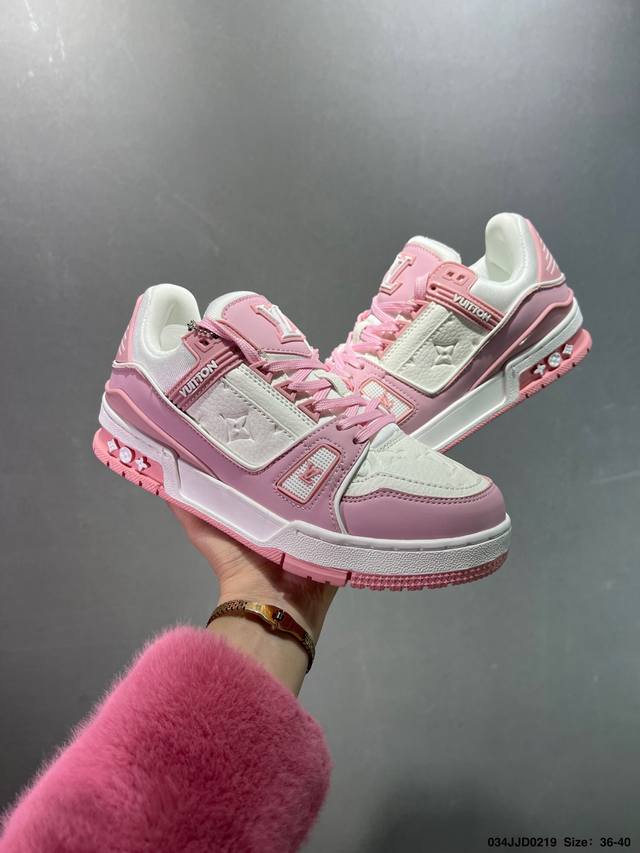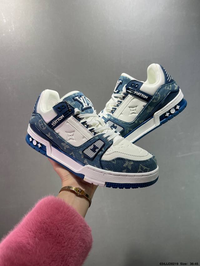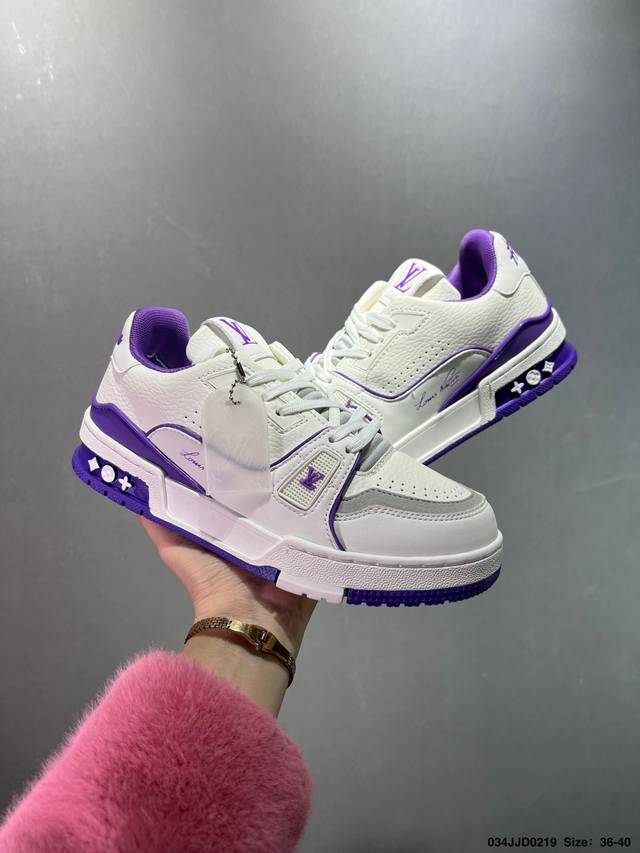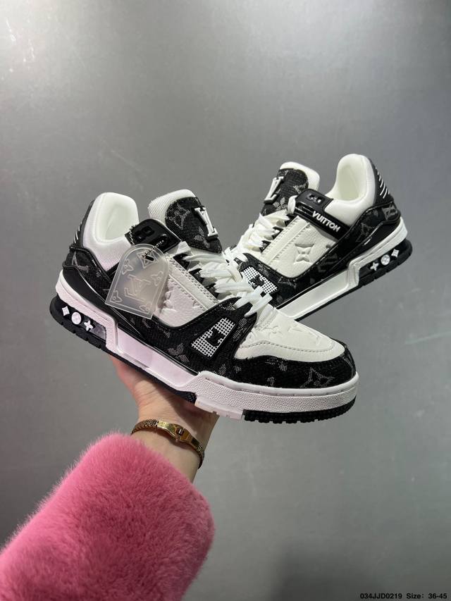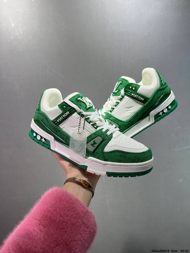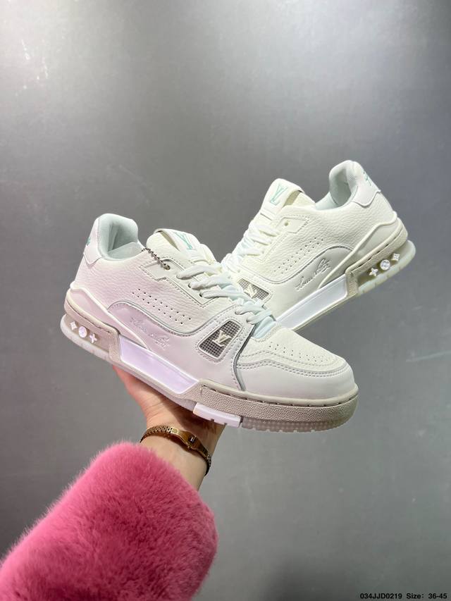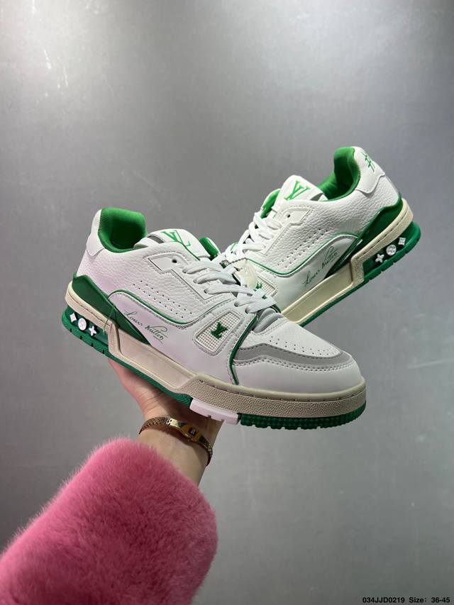 新款 Lv Trainer最新配色运动鞋 L家 篮球鞋风格运动鞋 该鞋由艺术总监 Virgil Abloh设计 垫脚聚米微料加透气英伦网布 细节原版一致 Size:36-45 如图 Id:034Jjd0219