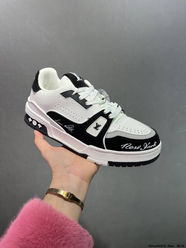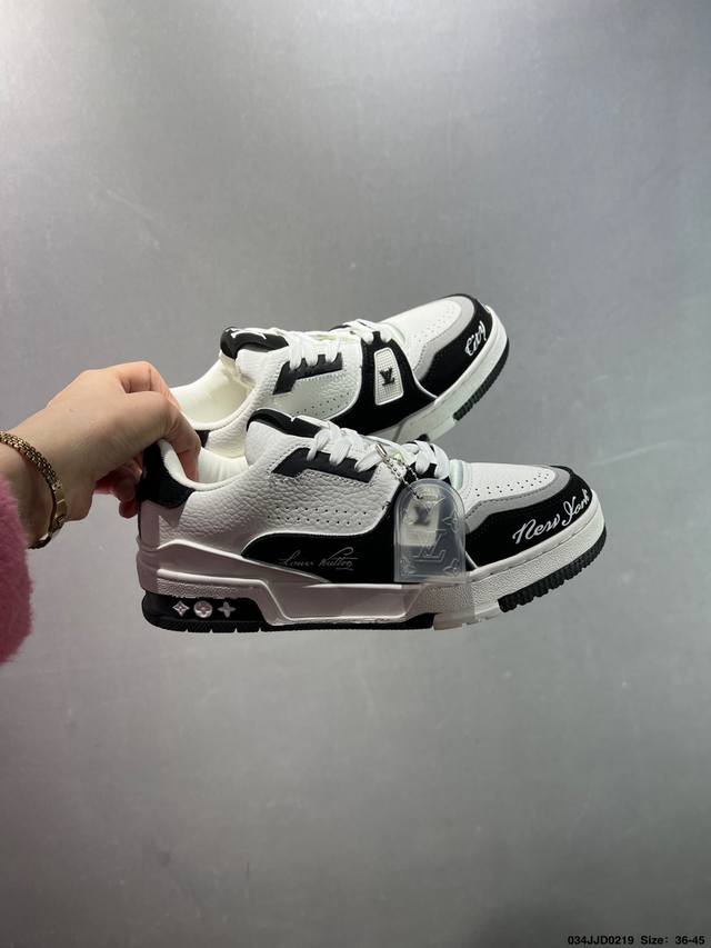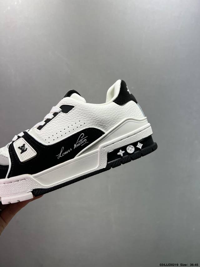 新款 Lv Trainer最新配色运动鞋 L家 篮球鞋风格运动鞋 该鞋由艺术总监 Virgil Abloh设计 垫脚聚米微料加透气英伦网布 细节原版一致 Size:36-45 如图 Id:034Jjd0219