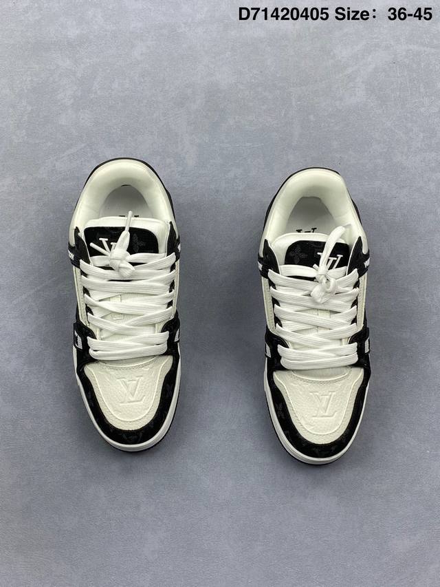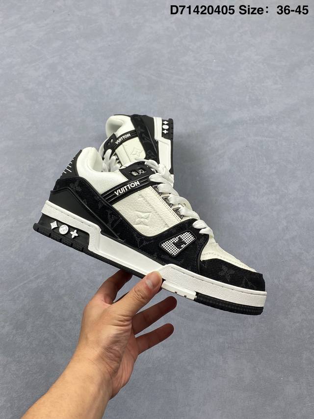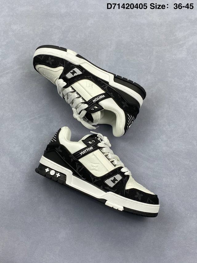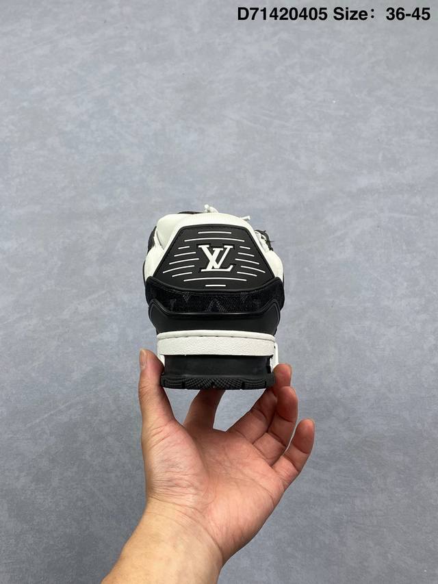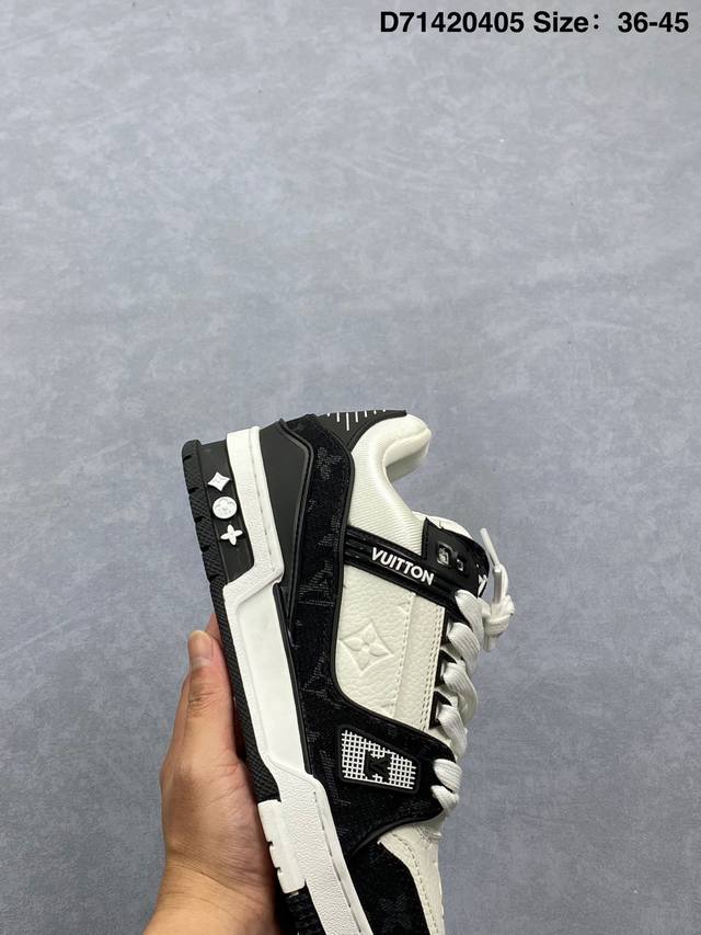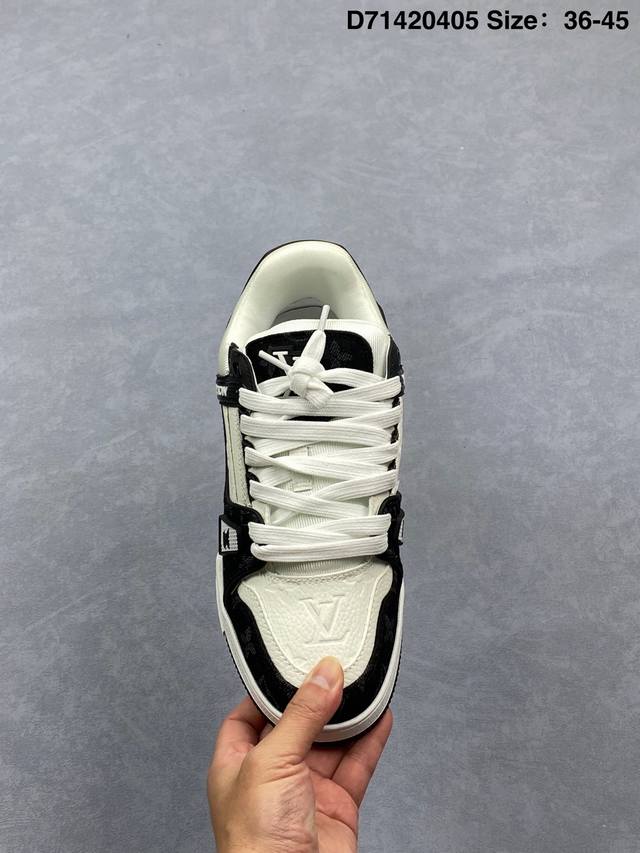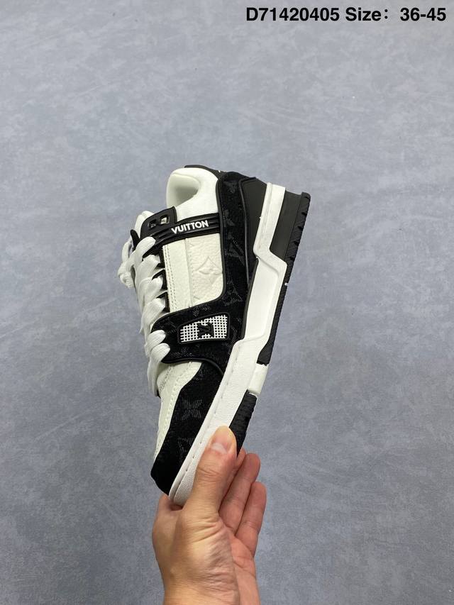 新款 Lv Trainer最新配色运动鞋 L家 篮球鞋风格运动鞋 该鞋由艺术总监 Virgil Abloh设计 垫脚聚米微料加透气英伦网布 细节原版一致 Size:36-45 如图 Id:D71420405