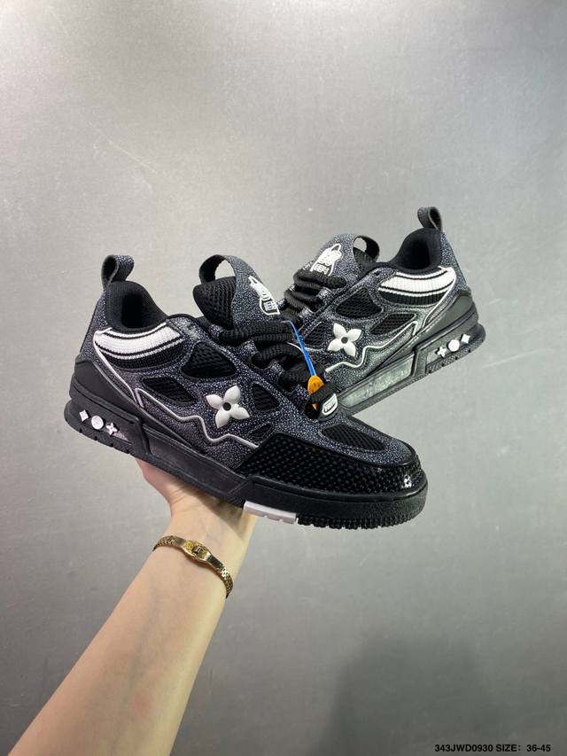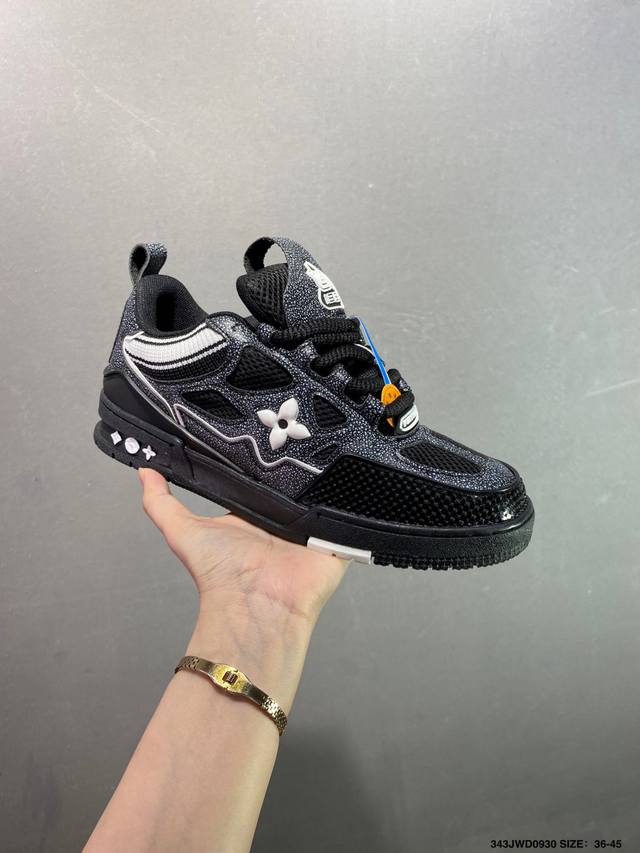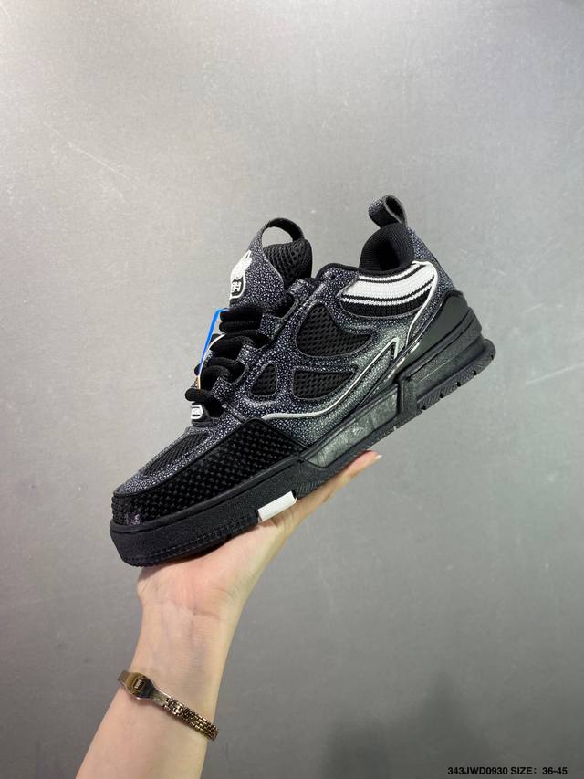新款 Lv Trainer最新配色运动鞋 L家 篮球鞋风格运动鞋 该鞋由艺术总监 Virgil Abloh设计 垫脚聚米微料加透气英伦网布 细节原版一致 Size:36-45 如图 Id:343Jwd0930