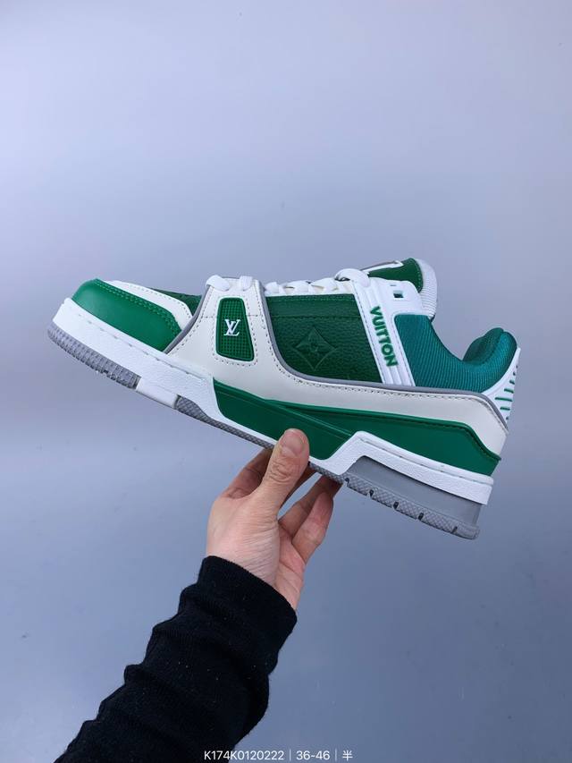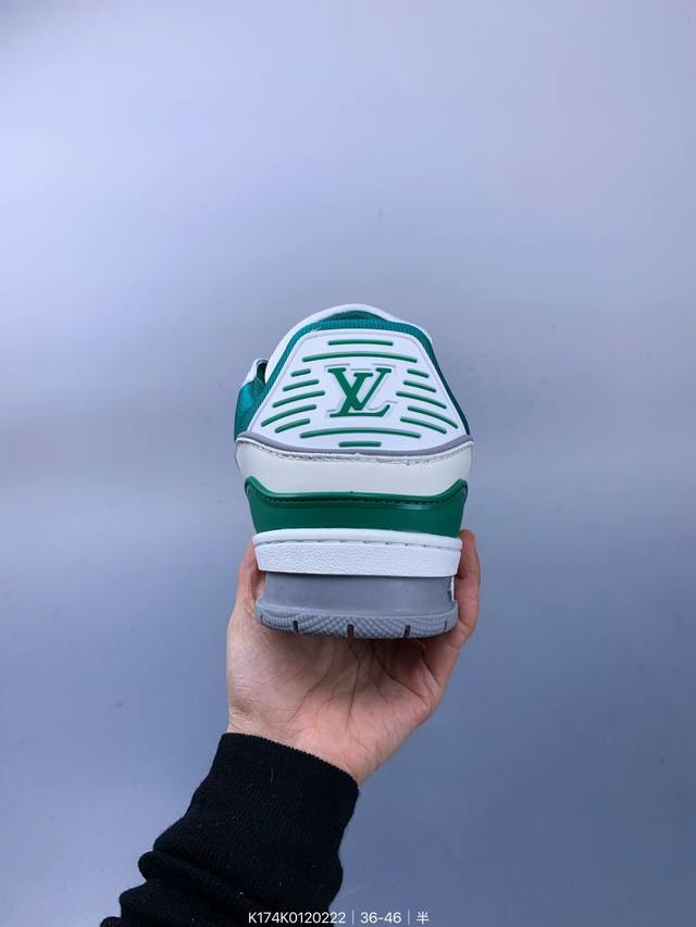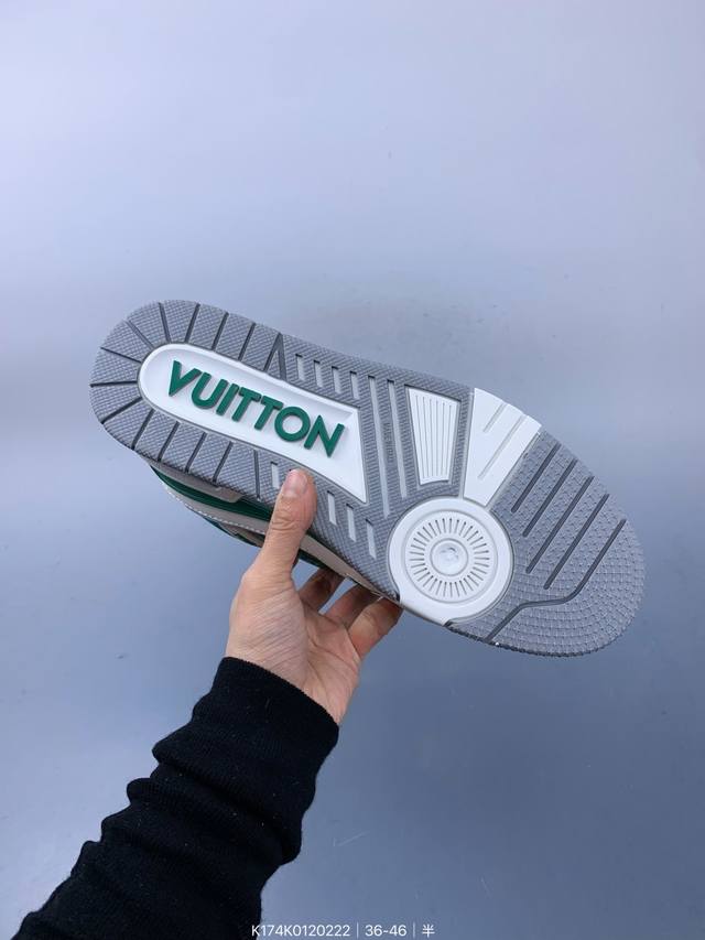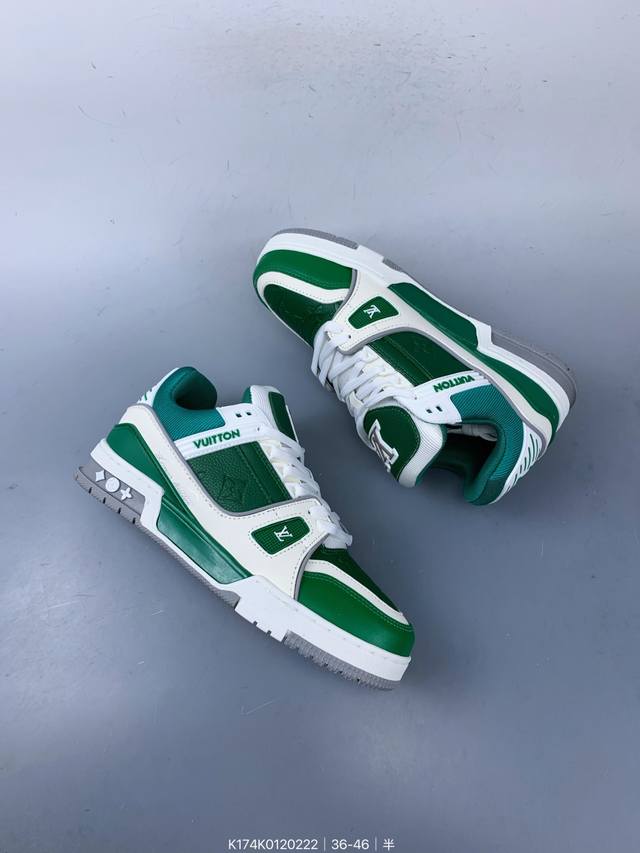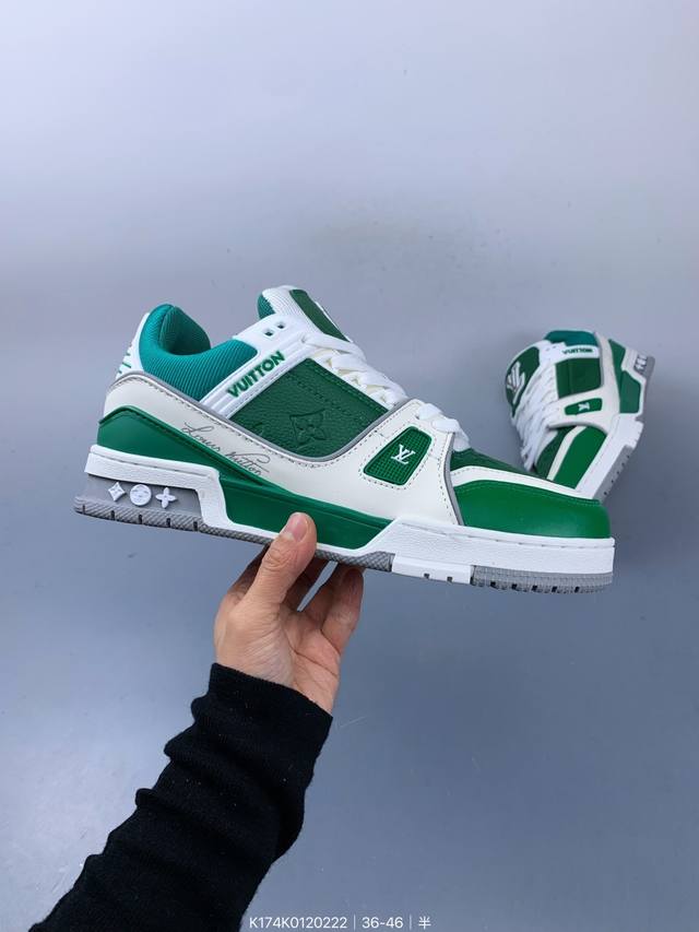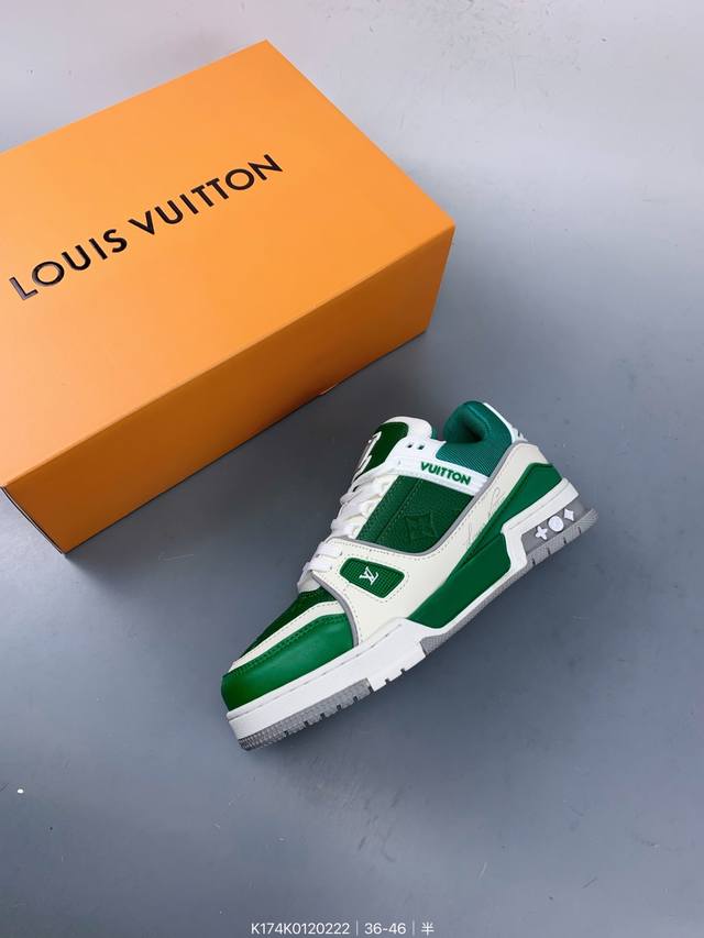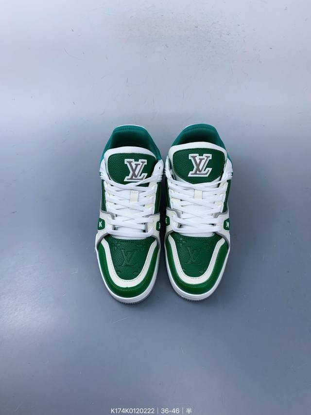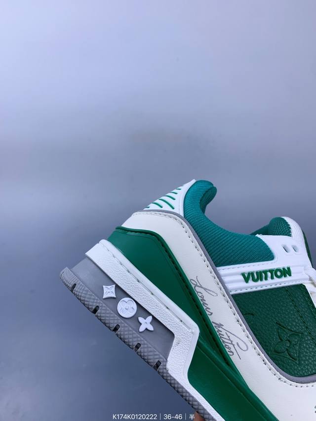 路易威登 Louis Vuitton Lv路易威登板鞋 时尚运动鞋 潮厚底增高鞋 。舒适防滑底和百搭性霸屏整个时尚娱乐圈,细节调整完美主义!鞋面采用柔软皮革鞋面,独家开模大底, 侧边采用3D打印标志性Logo 尽显贵族时尚气息,配带正品全套包装。全新Lv路易威登Louis Vuitton Trainer Sneaker Low 休闲运动文化百搭板鞋。