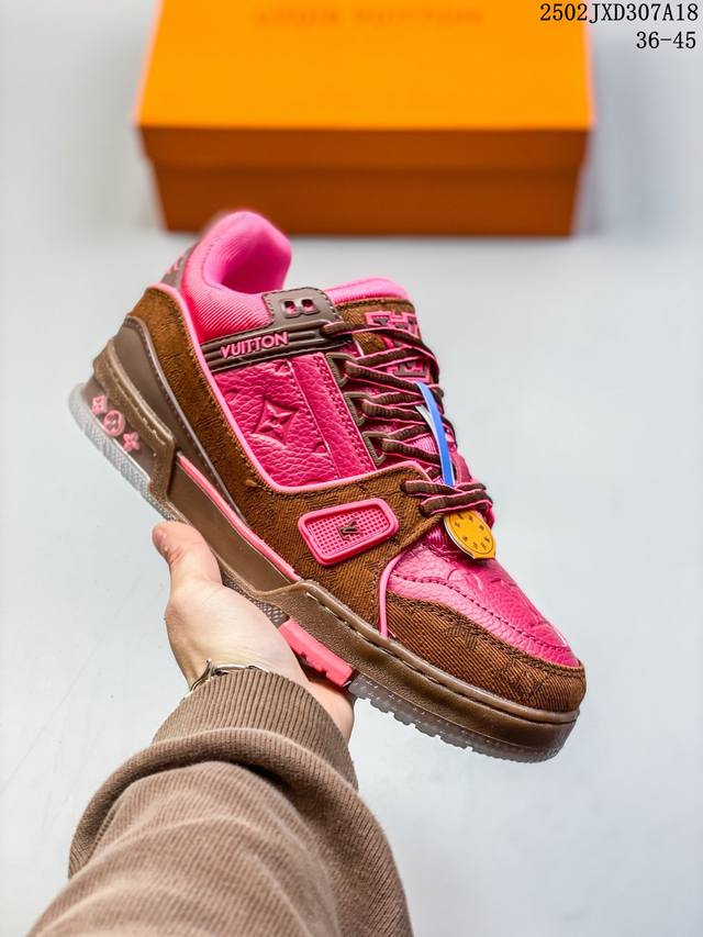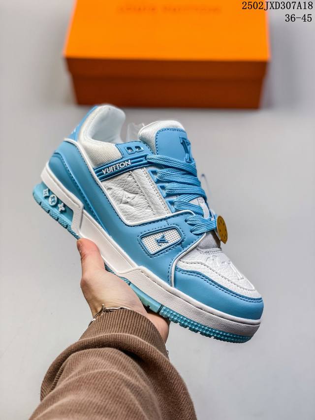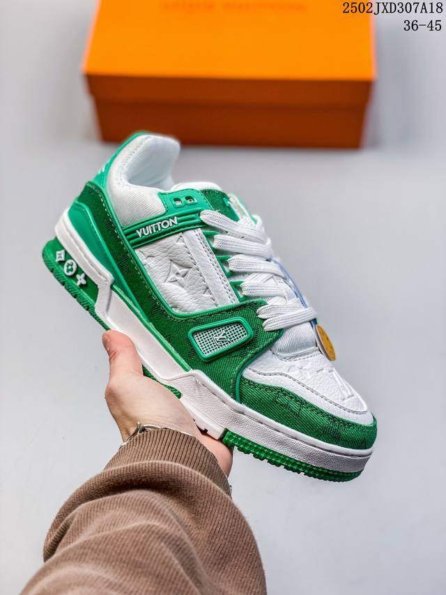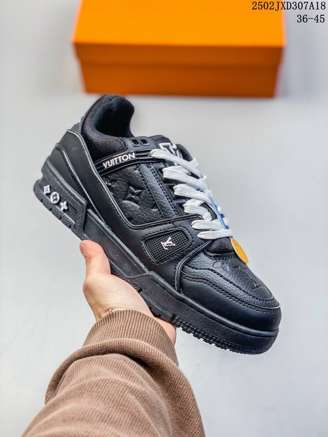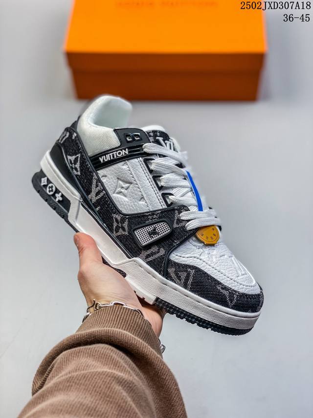 路易威登 Louis Vuitton Lv路易威登板鞋 浮雕印花 时尚运动鞋 潮厚底增高鞋 。舒适防滑底和百搭性霸屏整个时尚娱乐圈,细节调整完美主义!鞋面采用柔软皮革鞋面,独家开模大底, 侧边采用3D打印标志性Logo 尽显贵族时尚气息,配带正品全套包装。全新Lv路易威登Louis Vuitton Trainer Sneaker Low 休闲运动文化百搭板鞋。
