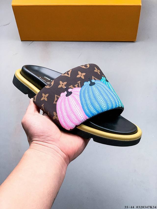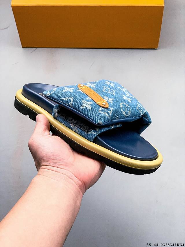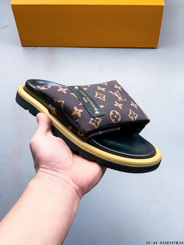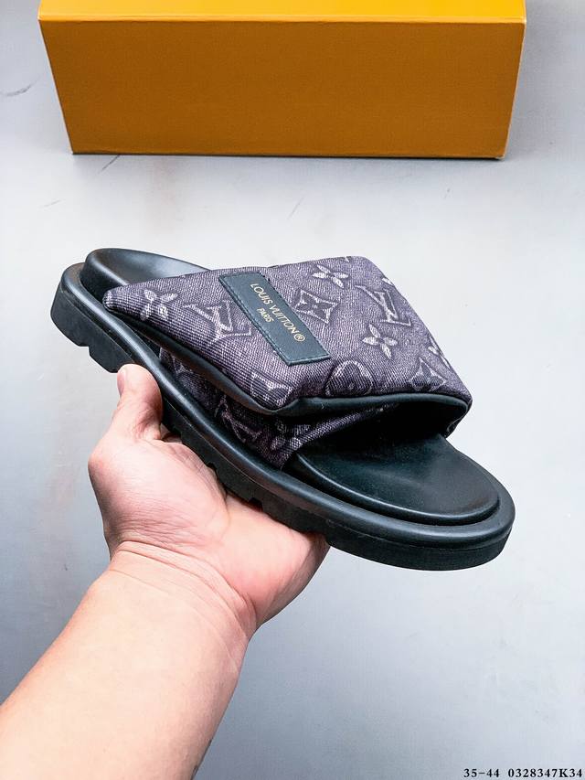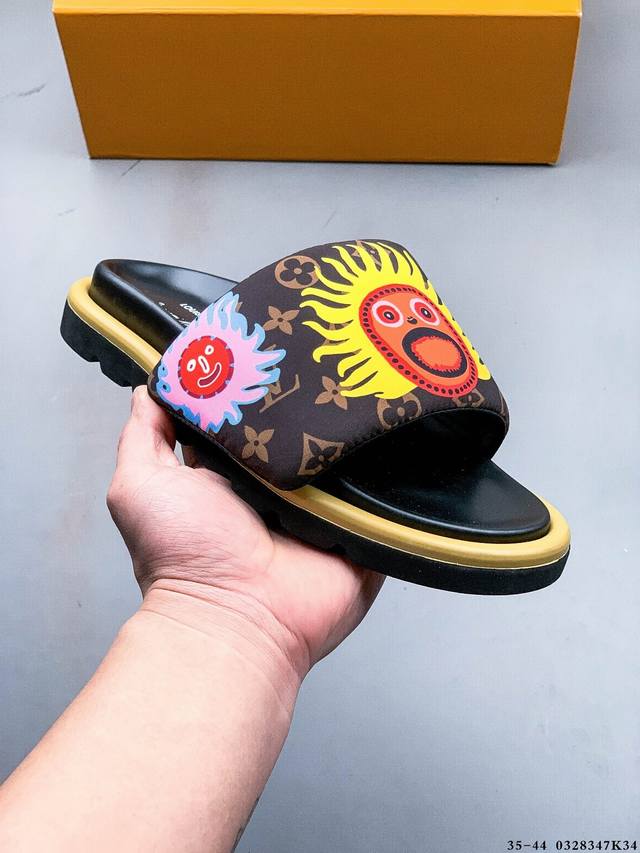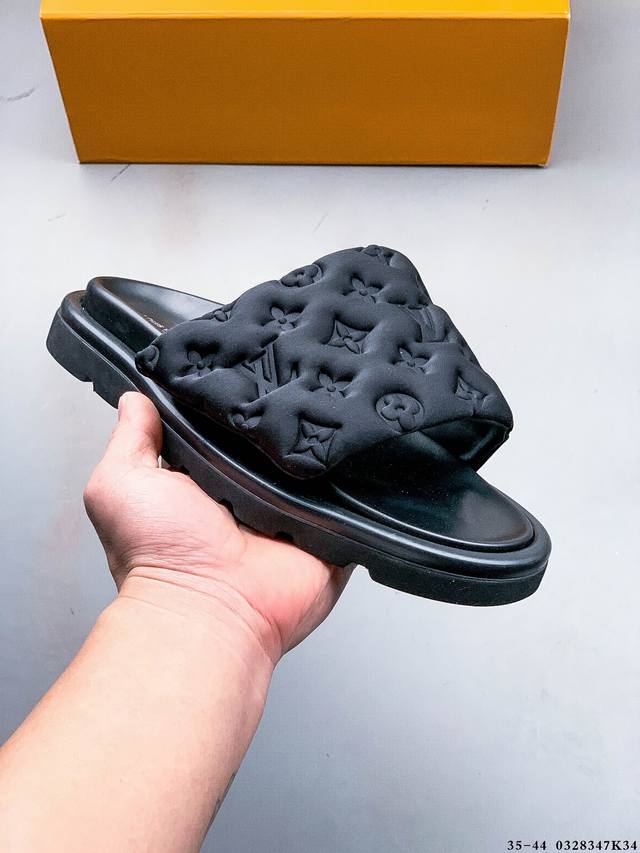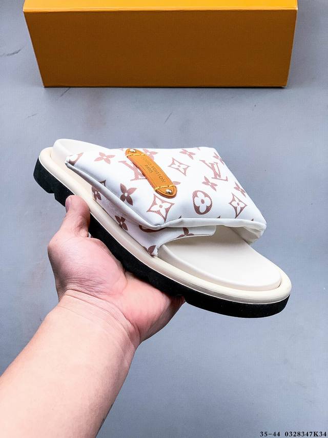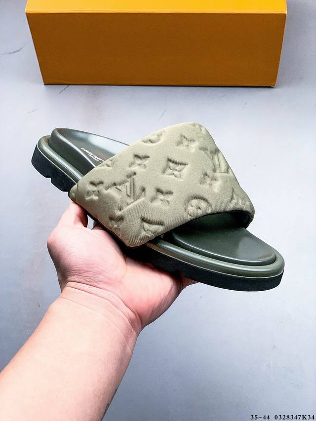 广东原产 夏季新品,法国奢侈品牌Lv路易威登Louis Vuitton Pool Pillow Comfort Monogram 日落系列泳池风舒适休闲凉拖鞋