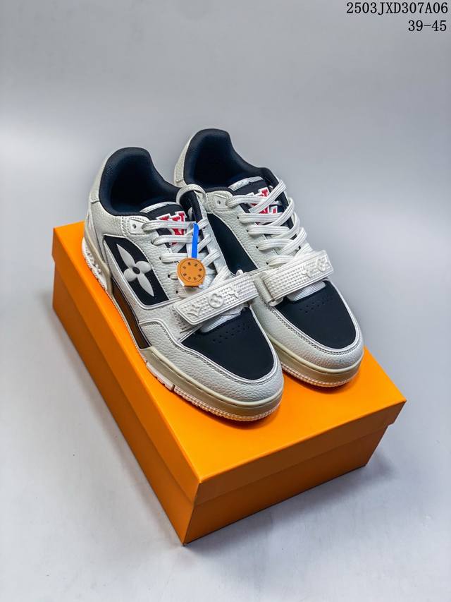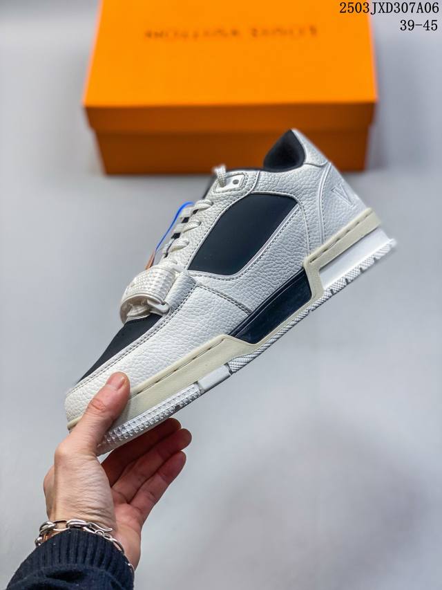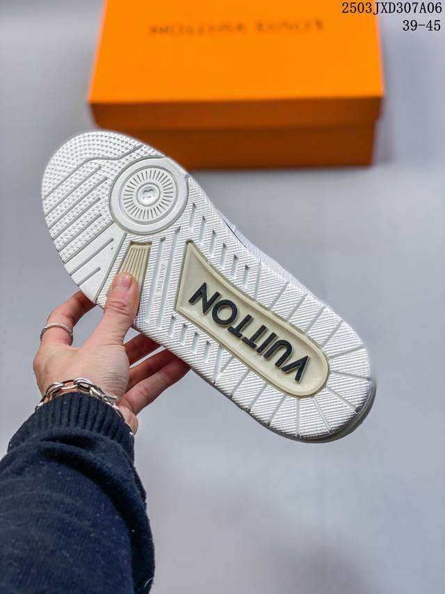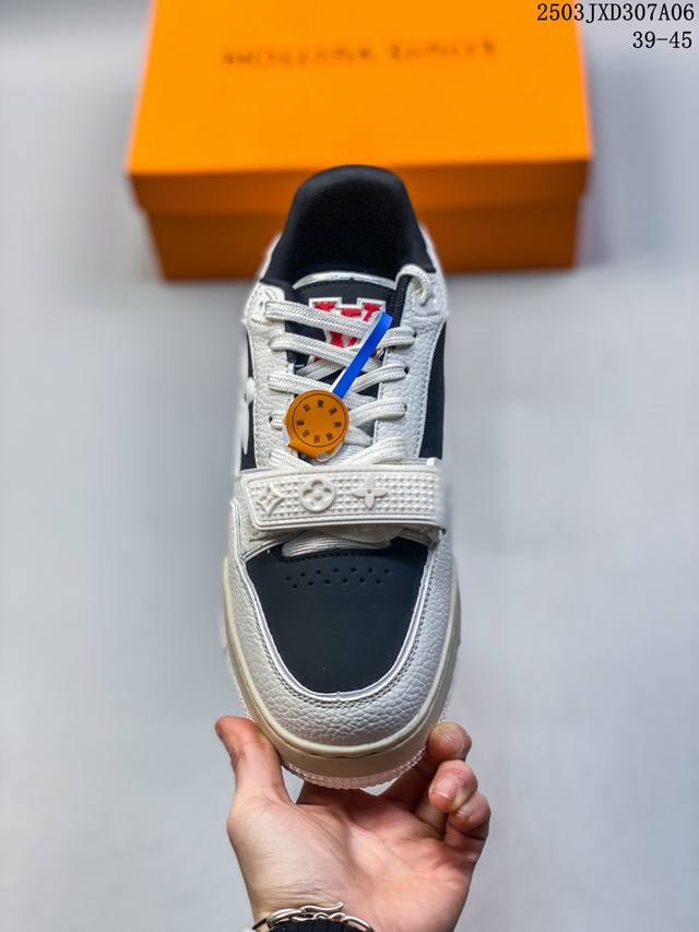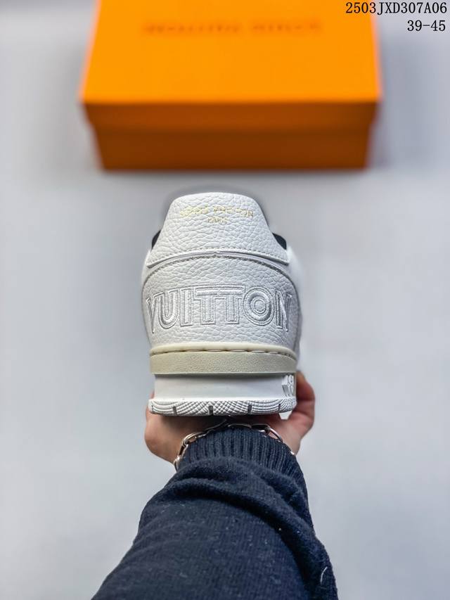 【公司级】路易威登 Louis Vuitton Lv路易威登板鞋 时尚运动鞋潮厚底增高男女鞋。舒适防滑底和百搭性霸屏整个时尚娱乐圈,细节调整完美主义!采用柔软皮革拼接鞋面,独家开模大底, 侧边采用3D打印标志性Logo 尽显贵族时尚气息,配带正品全套包装。全新Lv路易威登Louis Vuitton Trainer Sneaker Low 休闲运动文化百搭板鞋。