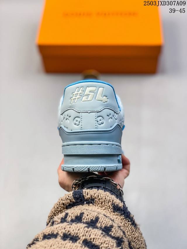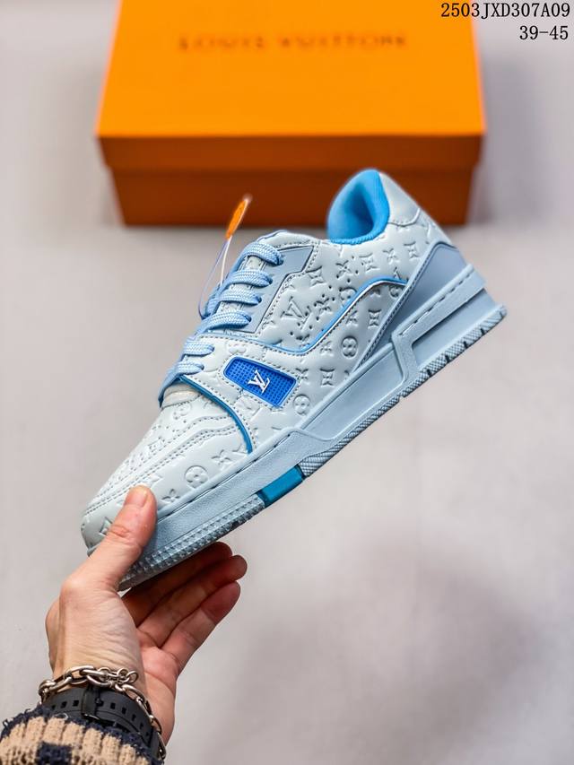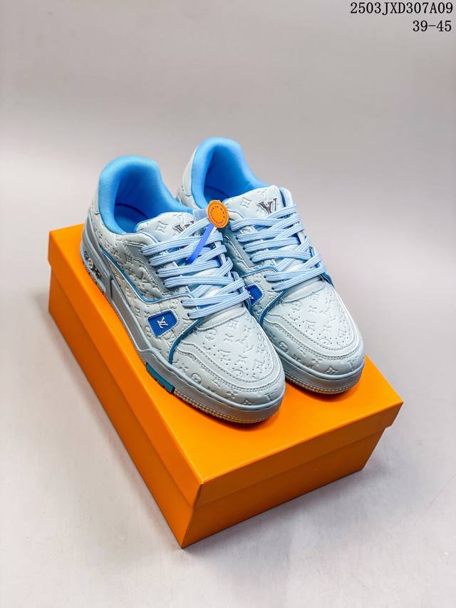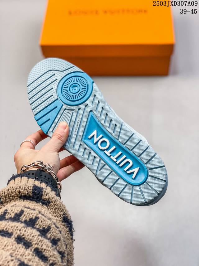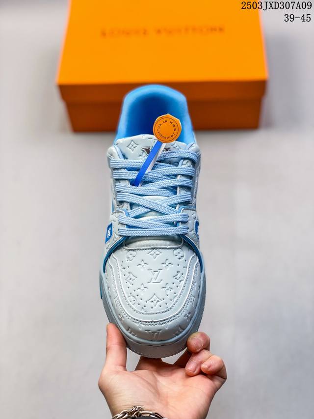 【公司级】路易威登 Louis Vuitton Lv路易威登板鞋 时尚运动鞋潮厚底增高男女鞋。舒适防滑底和百搭性霸屏整个时尚娱乐圈,细节调整完美主义!采用柔软皮革拼接鞋面,独家开模大底, 侧边采用3D打印标志性Logo 尽显贵族时尚气息,配带正品全套包装。全新Lv路易威登Louis Vuitton Trainer Sneaker Low 休闲运动文化百搭板鞋。