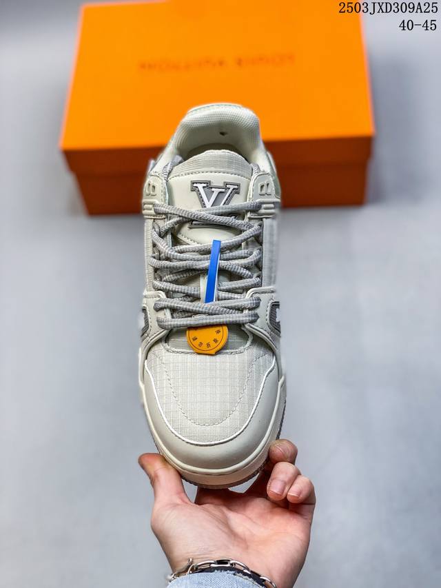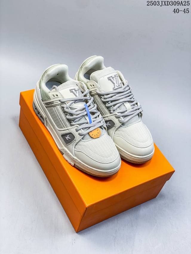 原版开发 全新爆款 Sneaker Lo 公司级路易威登板鞋面包鞋 新款 Lv Tyler X Louis Vuitton Trainer 圆头系带 魔术扣 低帮 板鞋 男款 皮革圆头系带低帮生活休闲鞋 平底男鞋 Lv Trainer最新配色 L家 篮球鞋风格运动鞋 该鞋由艺术总监 Virgil Abloh设计 垫脚聚米微料加透气英伦风 细节原版一致