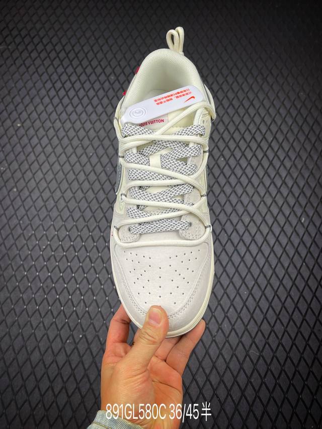 C Ddd × 联名解构款|潮流顶流碰撞!当Swoosh的街头基因遇上Lv的奢牌底蕴,这双Cx5050-Y51直接拉满潮流辨识度!米白磨砂皮基底叠印浅调老花,灰调Swoosh做旧解构设计打破常规,鞋侧 Louis Vuitton 字母与红色Lv标识撞色点睛,鞋尾红标细节更是暗藏巧思。从鞋身线条到材质拼接,每一处都融合了Dunk的经典轮廓与Lv的奢华质感,街头潮酷与高端时尚的碰撞,上脚即是焦点,潮人鞋柜的收藏级狠货! Ddd 货号:Cx5050 Ddd 尺码:36 36.5 37.5 38 38.5 39