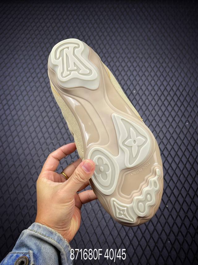 F当季新款 Lv Buttersoft 运动鞋 本款 Lv Buttersoft 运动鞋出自路易威登男装创意总监 Pharrell Williams 之手,致敬运动鞋首登时尚舞台的 1960 年代。羊皮革、牛皮革和衬垫鞋面带来柔软舒适的穿着体验,Lv 字母、路易威登皮具元素、Pharrell Williams 肖像和龙虾图案压纹呼应 2025 秋冬男士秀场主题。 羊皮革 素面牛皮革 鞋带 路易威登元素 手缝鞋面 Eva 外底饰有品牌元素 尺码:40-45 女鞋后出 编码:871680F