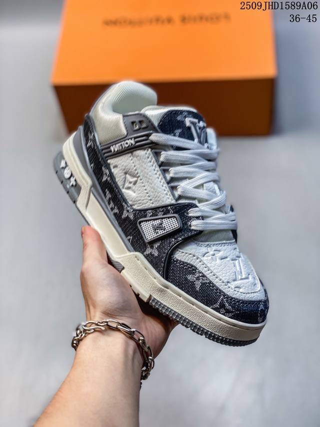 Lv Louis Vuitton Trainer Maxi 牛仔布 圆头系带低帮 板鞋 选用优质材料,精细制作。经典设计,展现优雅气质。舒适脚感,轻松穿梭。适合