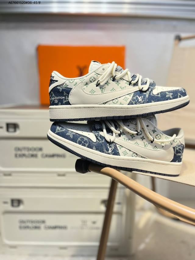 公司级头层皮Lv X 乔丹Air Jordan 1 Low Aj1低帮系列篮球鞋 官方同步配色 原装级产物 #拒绝公底 立体鞋型 细节完美 高清洁度Yx5066