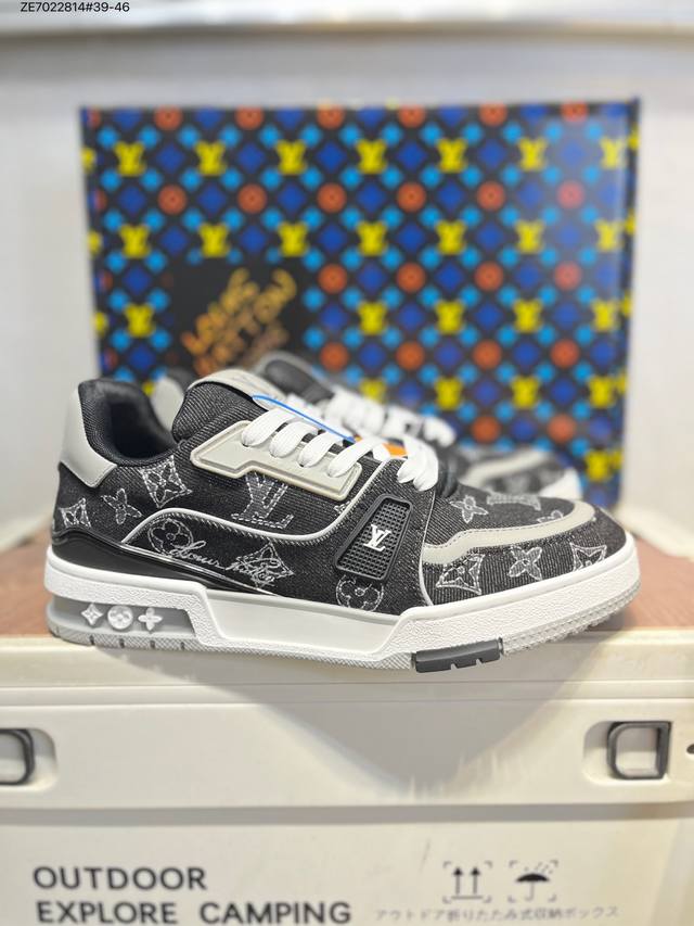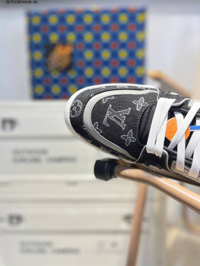 广东原厂# 路易威登 Louis Vuitton Lv路易威登板鞋 DDD 新款 Lv Trainer最新配色运动鞋 L家 篮球鞋风格运动鞋 该鞋由艺术总监 Virgil Abloh设计 垫脚聚米微料加透气英伦网布Ze7022814#39-46 DDD