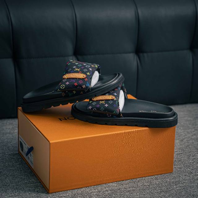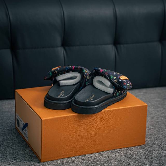 Louis Vuitton |路易威登2025Ss最新春夏款 村上隆 Takashi Murakami X Louis Vuitton 皮革 圆头套脚一字拖鞋 女款 白色 室内外穿着皆宜。纯羊羔毛材质,鞋面受专水台高密度发泡材质,轻盈舒适,鞋底厚度3.5。 上脚超显腿长