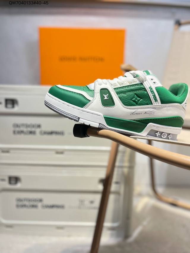 新款 Lv Trainer最新配色运动鞋 L家 篮球鞋风格运动鞋 该鞋由艺术总监 Virgil Abloh设计 垫脚聚米微料加透气英伦网布Qw7040133#40-45