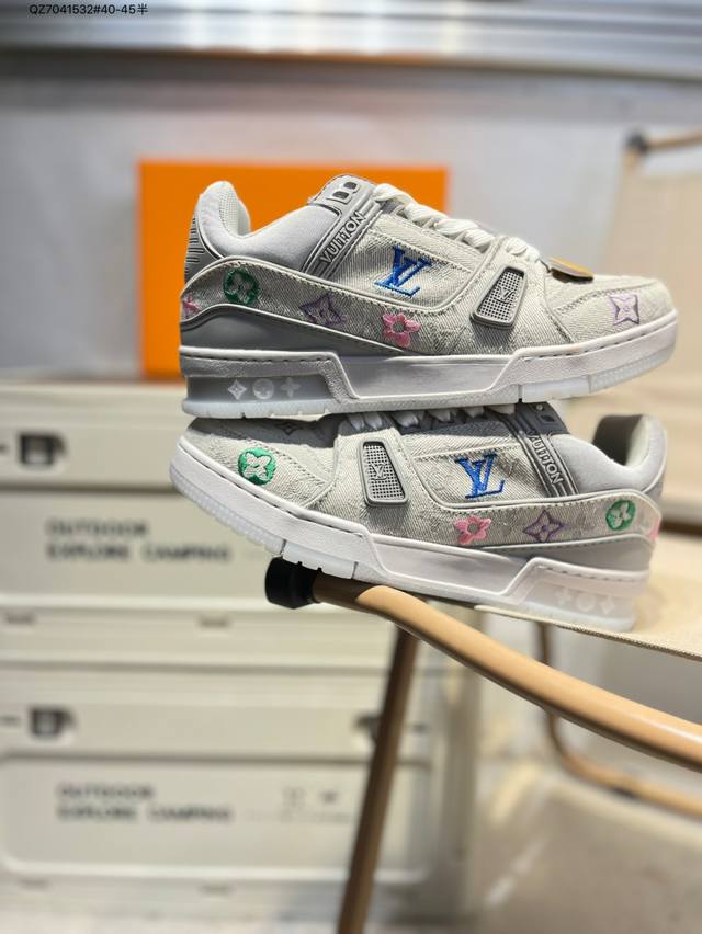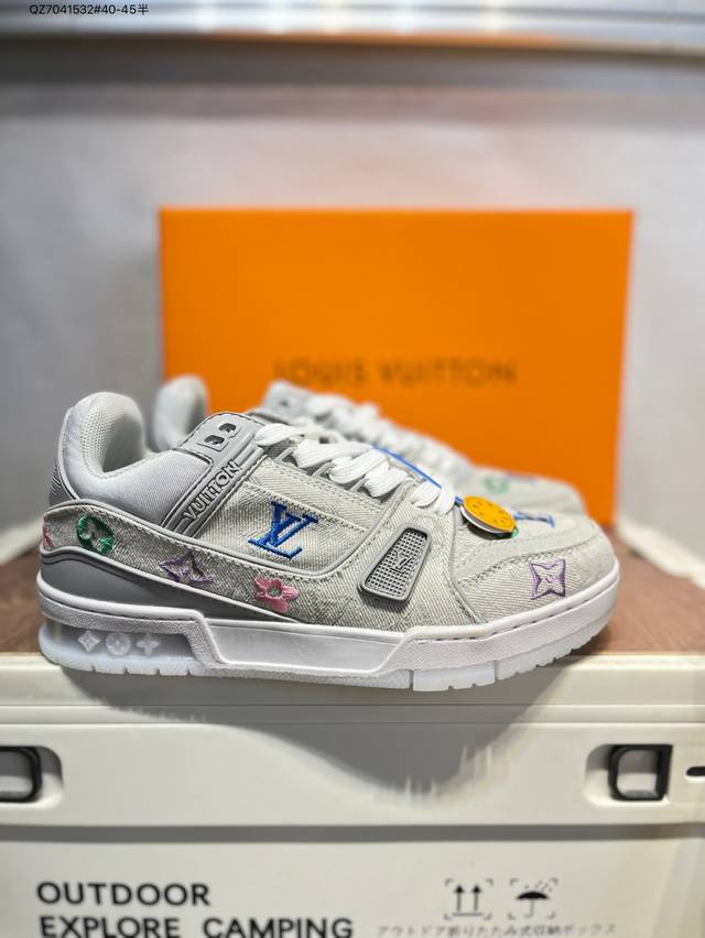 新款 Lv Trainer最新配色运动鞋 L家 篮球鞋风格运动鞋 该鞋由艺术总监 Virgil Abloh设计 垫脚聚米微料加透气英伦网布Qz7041532#40-45半