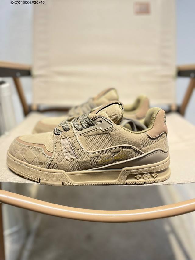 新款 Lv Trainer最新配色运动鞋 L家 篮球鞋风格运动鞋 该鞋由艺术总监 Virgil Abloh设计 垫脚聚米微料加透气英伦网布Qx7043002#36-46