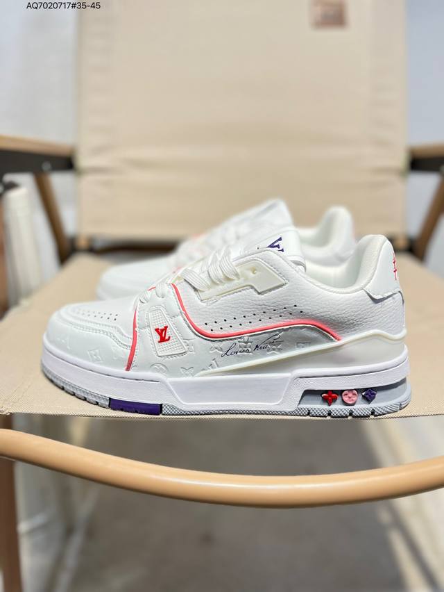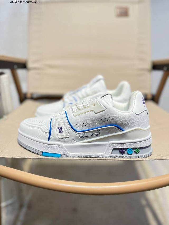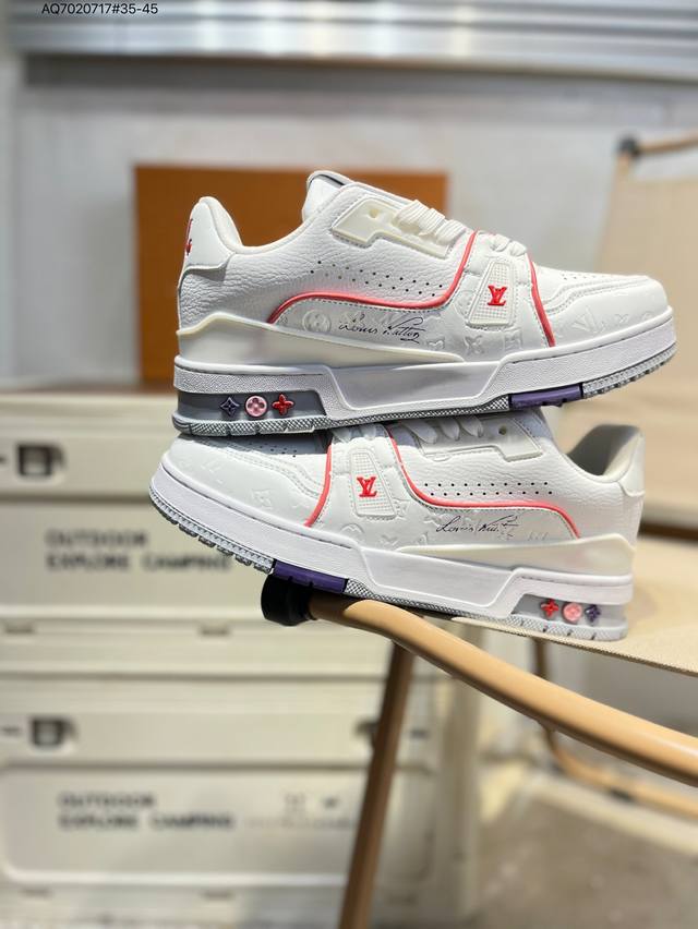 新款 Lv Trainer最新配色运动鞋 L家 篮球鞋风格运动鞋 该鞋由艺术总监 Virgil Abloh设计 垫脚聚米微料加透气英伦网布Aq7020717#35-45