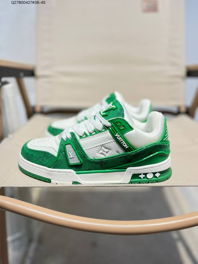 新款 Lv Trainer最新配色运动鞋 L家 篮球鞋风格运动鞋 该鞋由艺术总监 Virgil Abloh设计 垫脚聚米微料加透气英伦网布Qz7800427#36-45