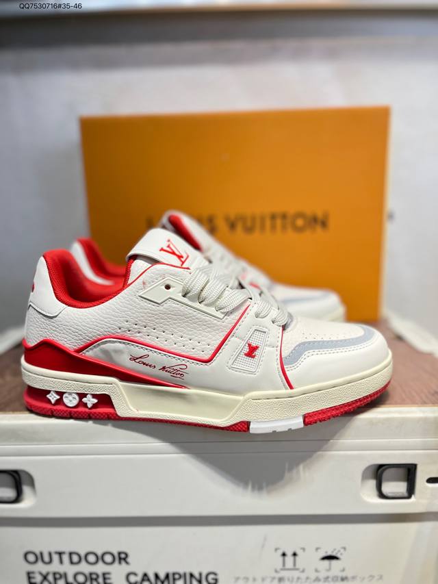 渠道优势 ! 广州版 驴牌 Lv Trainer 情侣限定系列 休闲 低帮 时尚板鞋 尺码 35 36 37 38 39 40 41 42 43 44 45 男