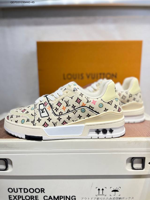 路易威登 Louis Vuitton Lv路易威登板鞋 DDD 新款 Lv Trainer最新配色运动鞋 L家 篮球鞋风格运动鞋 该鞋由艺术总监 Virgil Abloh设计 垫脚聚米微料加透气英伦网布Qd7020316#40-45 DDD