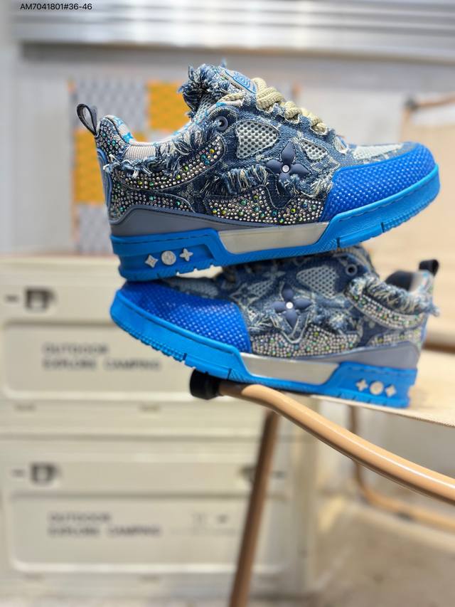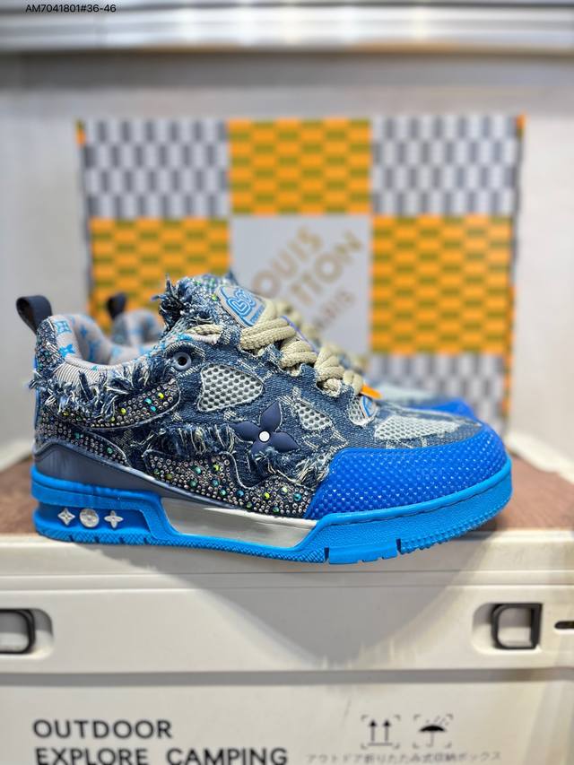 路易威登 Louis Vuitton Lv路易威登板鞋 DDD 新款 Lv Trainer最新配色运动鞋 L家 篮球鞋风格运动鞋 该鞋由艺术总监 Virgil Abloh设计 垫脚聚米微料加透气英伦网布Am7041801#36-46 DDD
