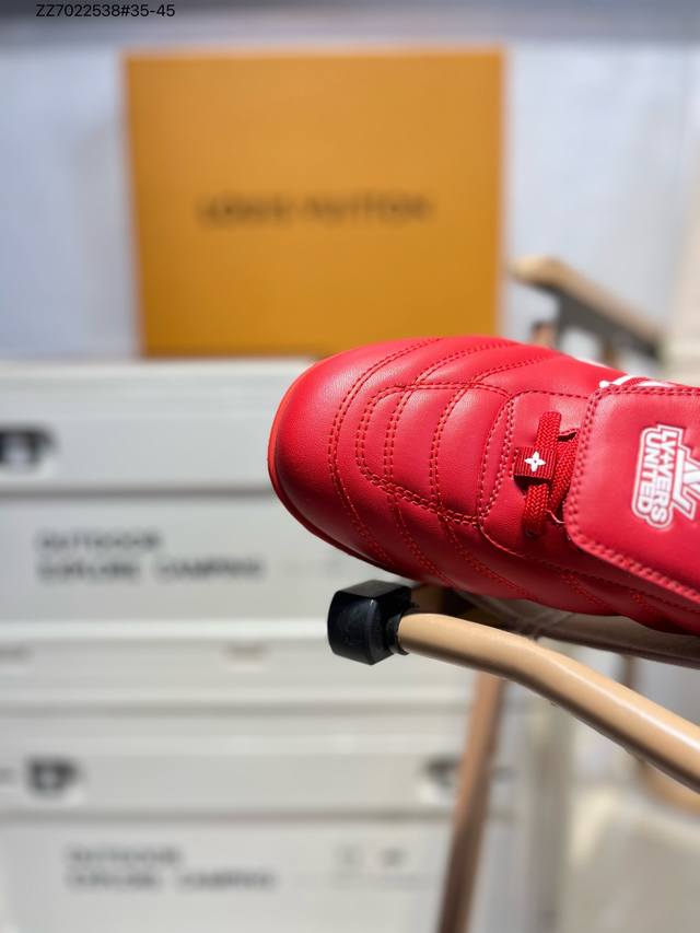 louis Vuitton Footprint Soccer Lv 皮革 2025春夏男士系列圆头系带低帮生活休闲鞋 2025春夏系列时装展中亮相,是Pharrell Williams 首次以足球鞋为灵感设计的运动鞋。鞋款的灵感来自跨越世代和文化的足球运动,呼应2025春夏系列时装展团结一致、全民参与的主题。鞋款以流丽的设计著称,侧面以富动感的Iv Initials标志点缀,鞋舌缀有灵感来自足球队伍的Lvers United徽章,而脚掌纹橡胶鞋底饰有多款路易威登标志 时髦休闲穿搭 时尚界的弄潮儿Z