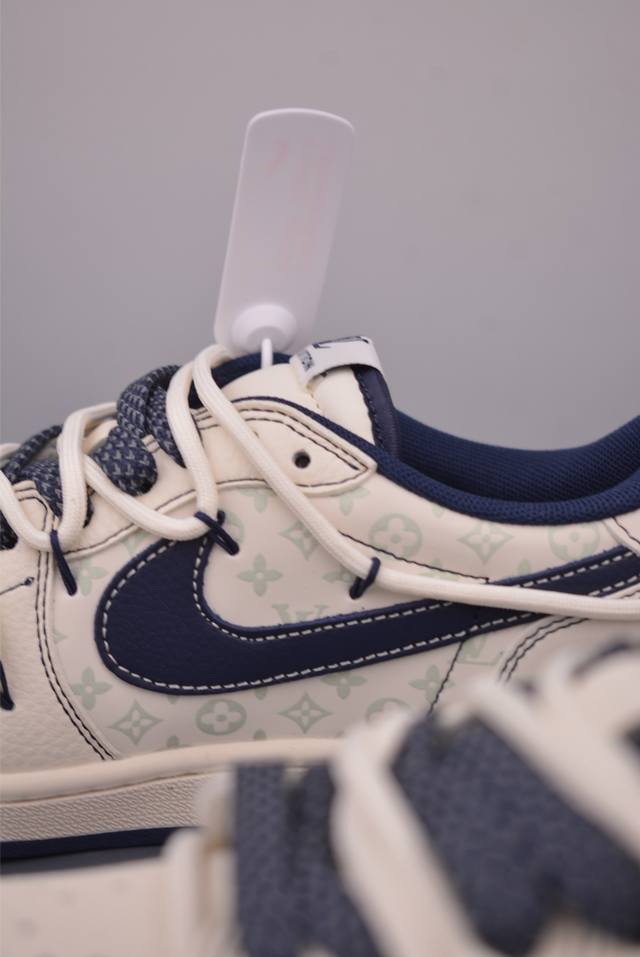 全新的三方联名低帮倒钩鞋面延续了黑脚趾设计,整双鞋以全荔枝皮打造,腰身搭配白色 倒勾 ,再点缀上Travis Scott 标志性的Logo,后跟处以藤原浩最拿手的蓝色为主色调,完善极具Fragment Design的白蓝黑设计风格,左右脚分别以Travis Scott鬼脸和乔丹飞翼加以修饰,彰显出三方联名的奢华格调。