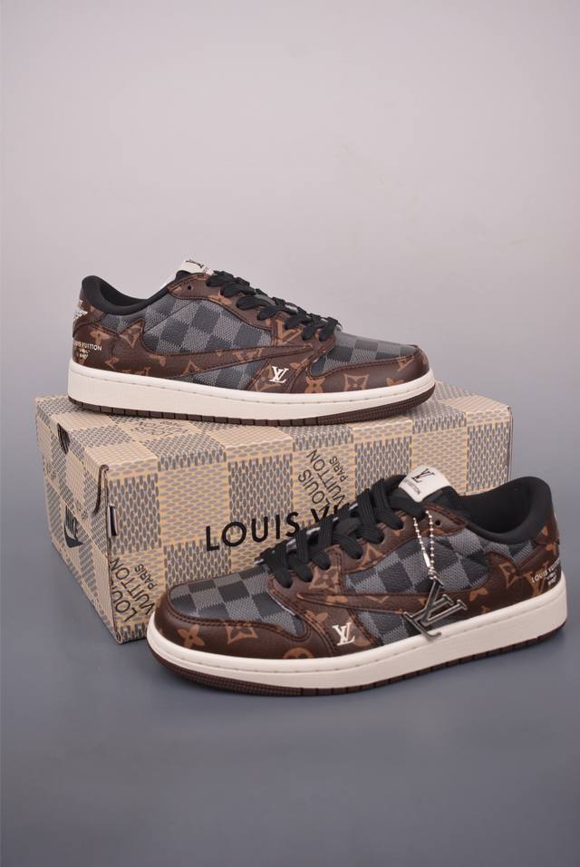 Fragment X Travis Scott X Lv Air Jordan 1 Low 解构鞋带 三方联名倒钩 全新的三方联名低帮倒钩鞋面延续了黑脚趾设计,整双鞋以全荔枝皮打造,腰身搭配白色 倒勾 ,再点缀上Travis Scott 标志性的Logo,后跟处以藤原浩最拿手的蓝色为主色调,完善极具Fragment Design的白蓝黑设计风格,左右脚分别以Travis Scott鬼脸和乔丹飞翼加以修饰,彰显出三方联名的奢华格调。 官方货号:Sc0601 0512226 Size:36 36.5 37.5