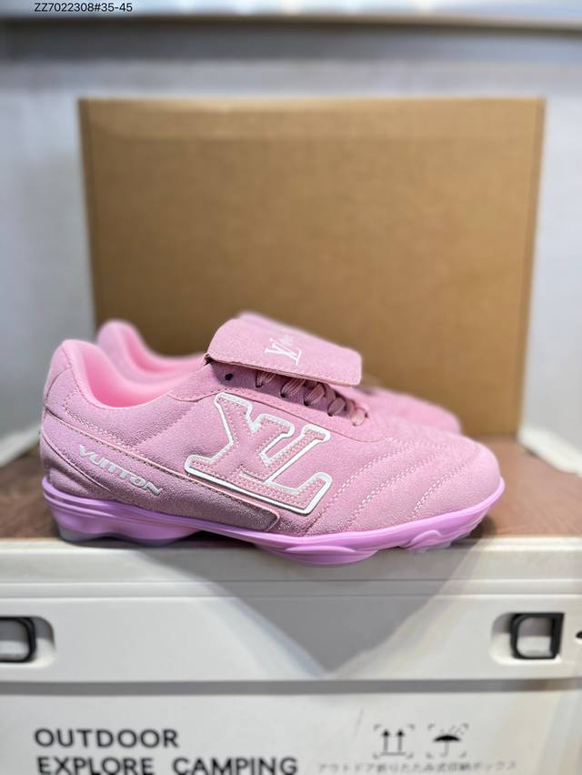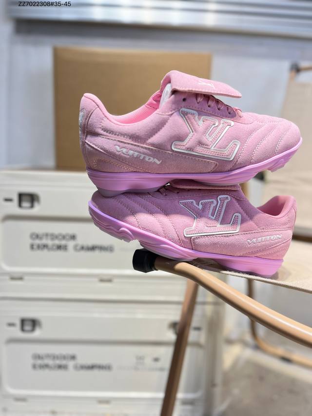 Louis Vuitton Footprint Soccer Lv 皮革 2025春夏男士系列圆头系带低帮生活休闲鞋 2025春夏系列时装展中亮相,是pharrell Williams 首次以足球鞋为灵感设计的运动鞋。鞋款的灵感来自跨越世代和文化的足球运动,呼应2025春夏系列时装展团结一致、全民参与的主题。鞋款以流丽的设计著称,侧面以富动感的Iv Initials标志点缀,鞋舌缀有灵感来自足球队伍的Lvers United徽章,而脚掌纹橡胶鞋底饰有多款路易威登标志 时髦休闲穿搭 时尚界的弄潮儿 Zz70