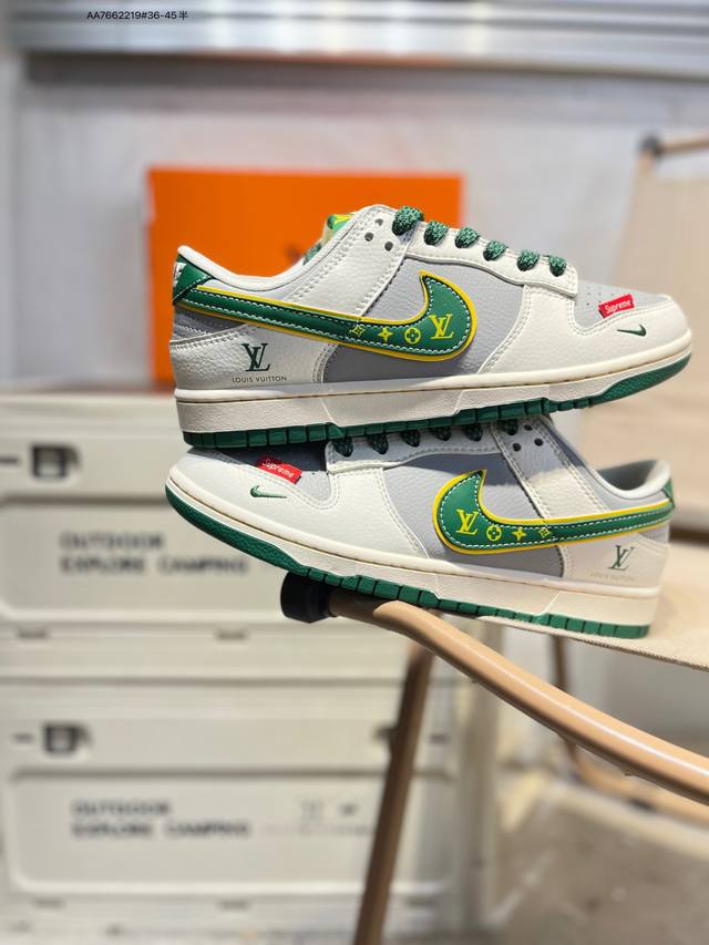 Lv X Nike Sb Dunk Low 大厂出品 极力推荐 新配色 原装头层材料 独家版型蒸餾加工 帶來的是更好的视觉和脚感体验 大厂纯原品质出货 清洁度 电绣工艺 皮料切割干净无任何毛边 细节完美Zy1618 Aa7662219#36-45半