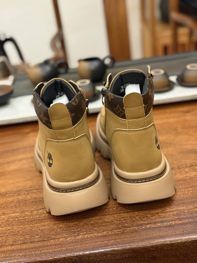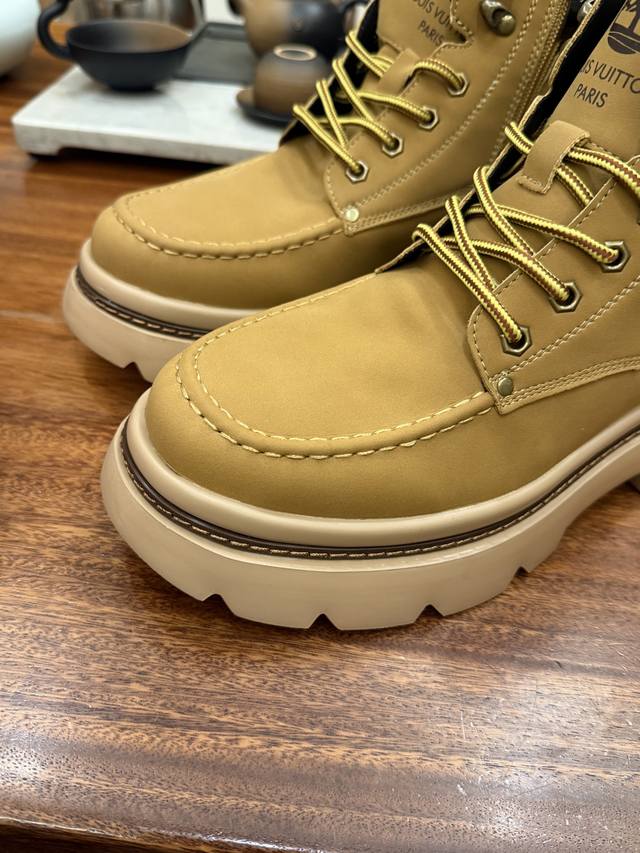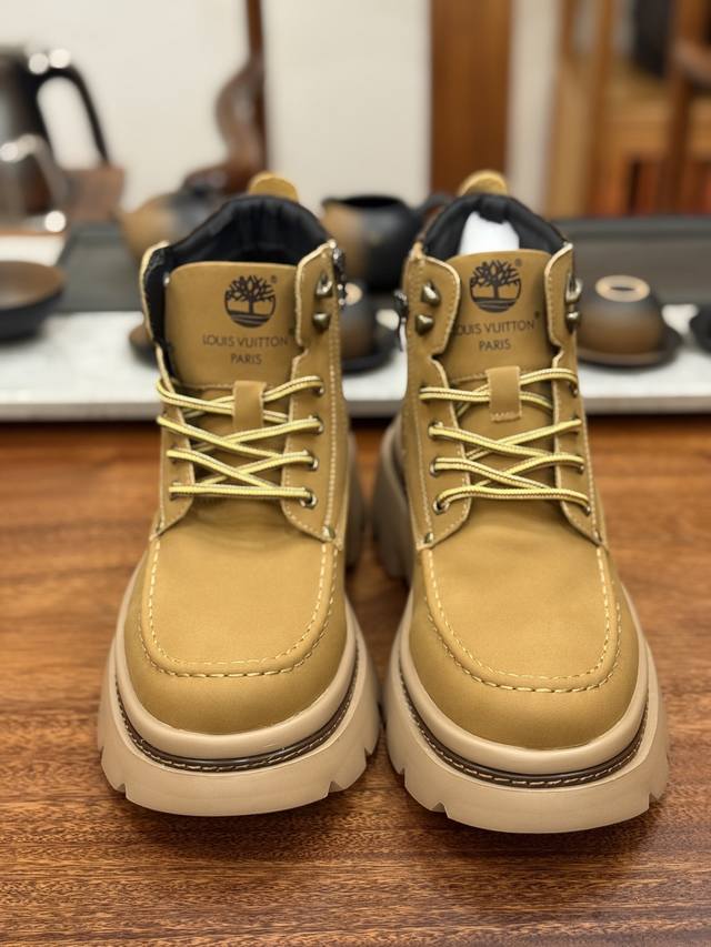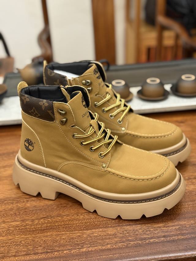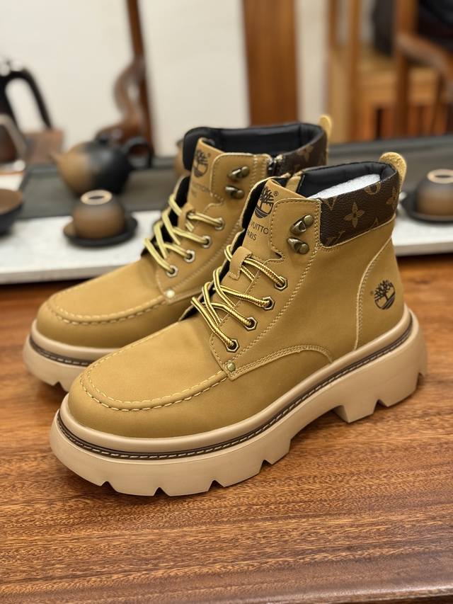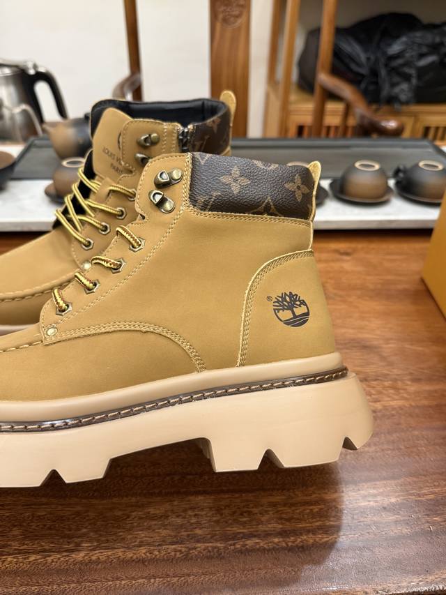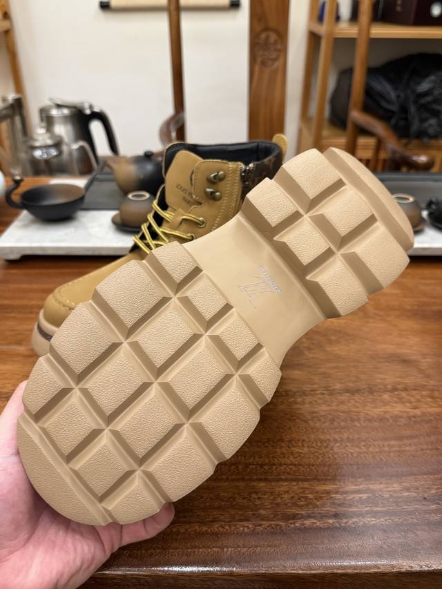 Lv X Timberland Lv联名添柏岚大黄靴 顶奢流量品牌与时代经典的结合之作 巴黎时装首秀 #代购专供品质 高弹Modern 外置防滑橡塑发泡超轻大底 系带设计 穿脱十分方便 采用Tpu模压定型真皮鞋面材质#Eva轻翼科技外底具有防滑,耐磨和良好的弹性 Pharrell Williams充分发挥了作为Louis Vuitton创意总监的角色 这款鞋重新定义了 6英寸大黄靴的经典设计 致敬1996年Grandmaster Flash经典黄靴造型 原厂五金鞋带扣 工艺全新升级 中山大厂代工 原单进口