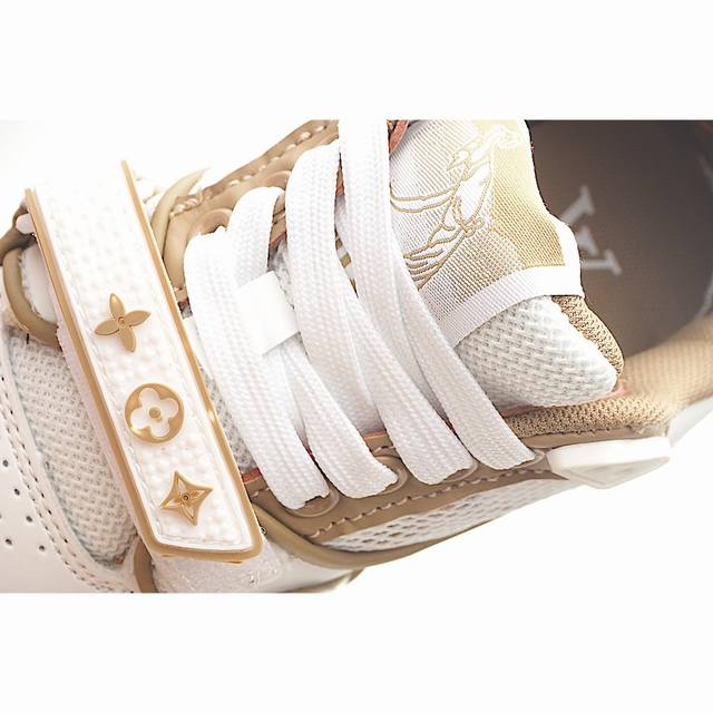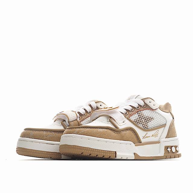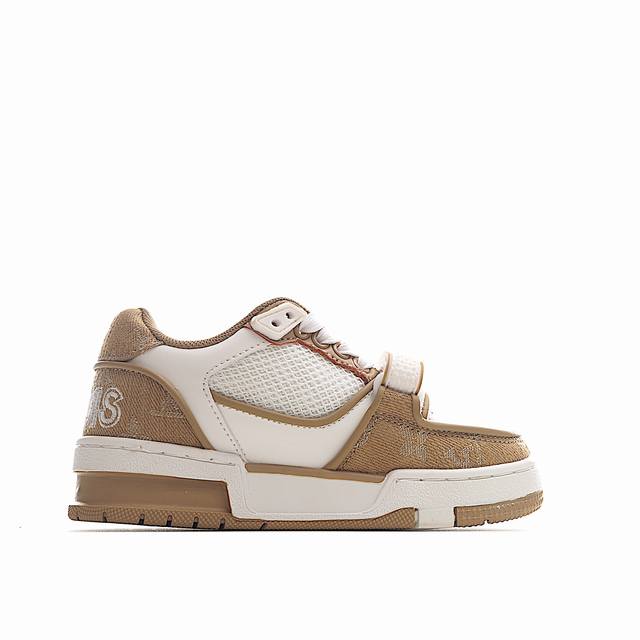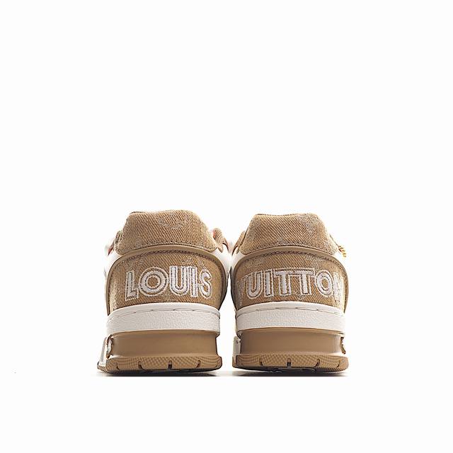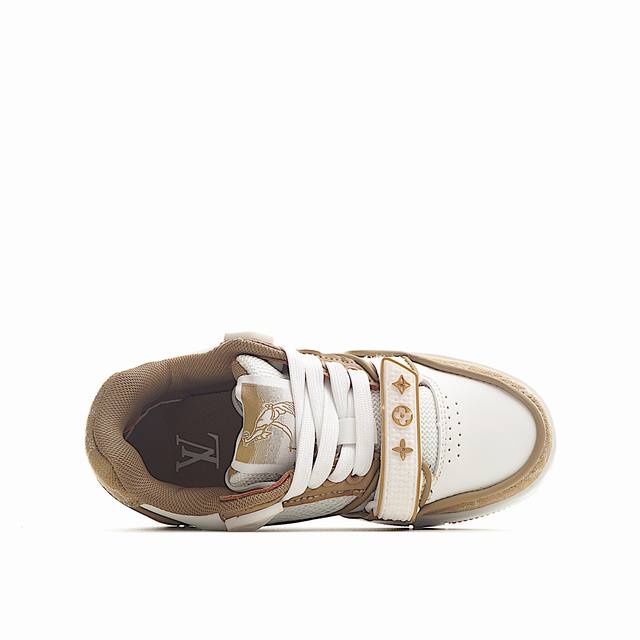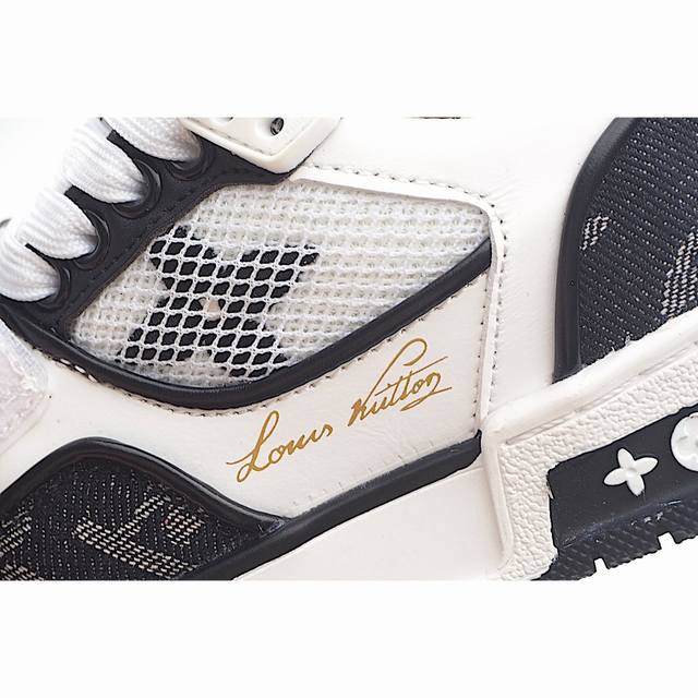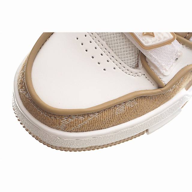 受复古篮球鞋的启发,Virgil Abloh 为 L V此次取材字母组合压纹小牛皮。作为鞋收集的图标的个性发光。由会标牛仔布和魔术贴肩带制成,带有会标花卉图案注入。后跟采用柔软材质舒适贴合脚踝。