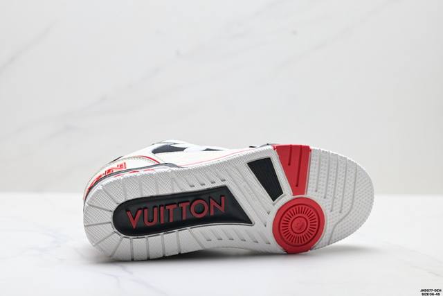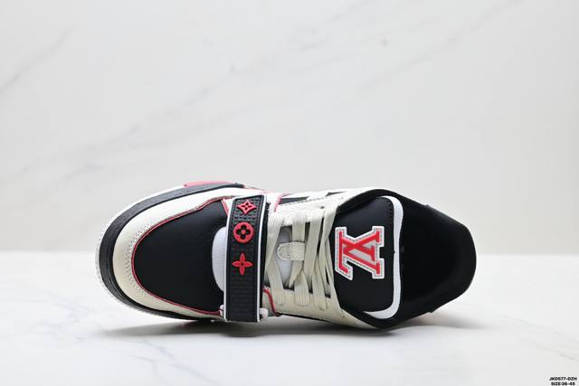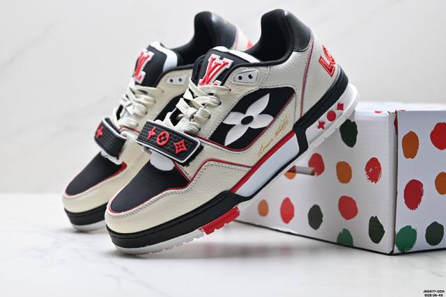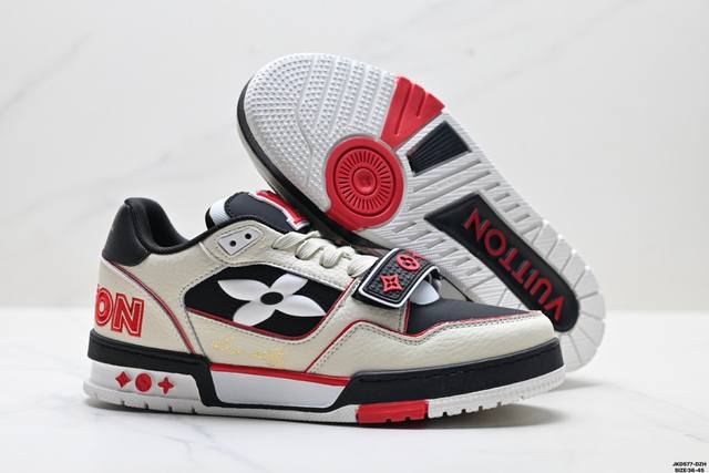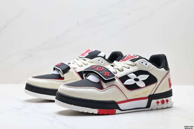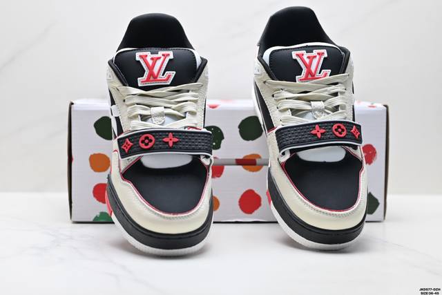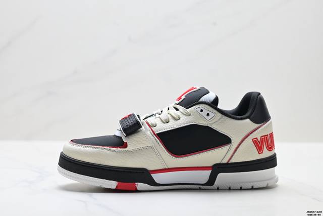 公司级Louis Vuitton Trainer Sneaker Low 路易威登 休闲运动文化百搭板鞋 舒适防滑底和百搭性霸屏整个时尚娱乐圈 细节调整完美主义 鞋面采用柔软皮革鞋面 独家开模大底 侧边采用3D打印标志性Logo 尽显贵族时尚气息 配带正品全套包装 尺码:36-45 Id:Jkd577-Dzh