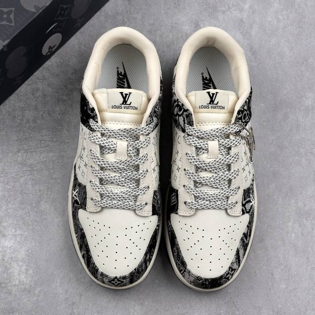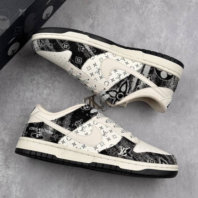 Nk Sb Dunk Low Lv联名-白黑牛仔印花 3M反光 夜光效果 周年高端定制 低帮休闲板鞋