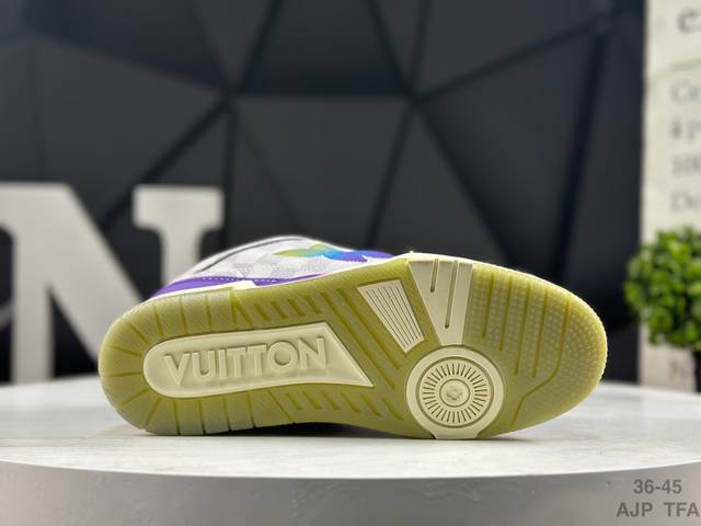 性价比 Lv路易威登louis Vuitton Trainer Sneaker Low低帮复古百搭休闲文化运动板鞋 男女鞋,采用荔枝纹二层牛剖革组合粒面牛剖革鞋