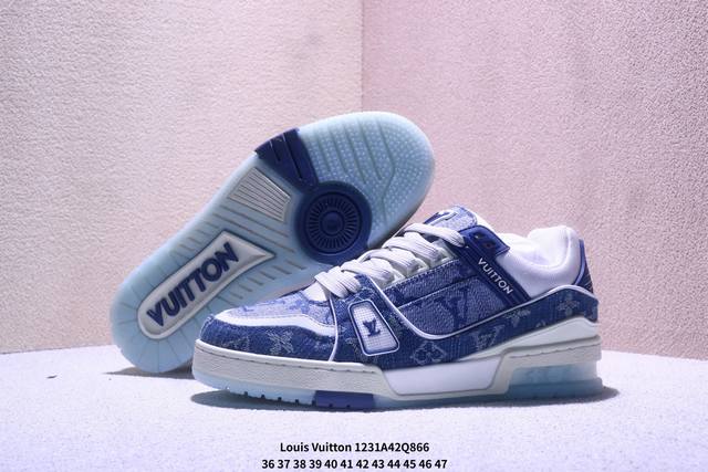 Louis Vuitton Trainer Sneaker Low 人气单品路易威登Louis Vuitton Trainer Sneaker Low低帮复古休闲运动文化百搭篮球板鞋 路易威登艺术总监Virgil Abloh对复古篮球鞋的解读呈现为Lv Trainer运动鞋 嵌入凝胶的创新外底饰有Monogram花卉纹饰 Monogram牛仔布 橡胶外底 侧面饰有Vuitton标识 外底饰有Monogram花卉 Ddd 尺码:看图所示 Ddd Xm1231Q866 DDD