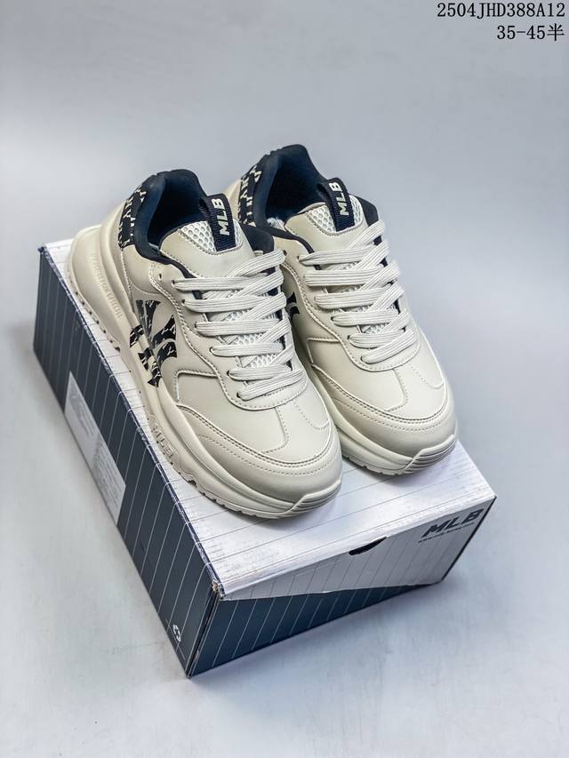 公司级套现韩国Mlb 复古老爹 Mlb Bigball Chunky Mono 复古印花 男女厚底增高纽约洋基队老爹运动休闲鞋