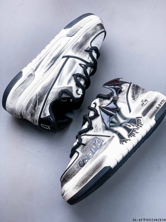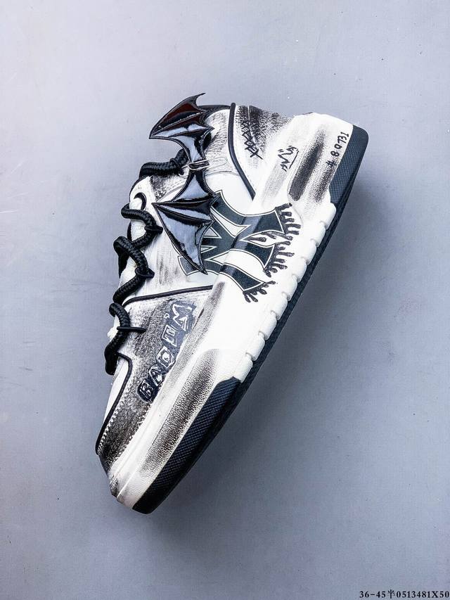 公司级[定制球鞋] Mlb纽约洋基队 潮流密码街头涂鸦喷绘手绘学院耐磨增高风低邦板鞋男女同款 该定制鞋选用原鞋为Mlb纽约洋基队厚底耐磨增高低帮板鞋,以涂鸦为灵感元素,鞋底个性的斑马线切割,更具街头动感。运用纯手工喷绘及手绘的工艺,街头涂鸦元素,复古与经典结合,碰撞出新的潮流。定制球鞋可以正常穿洗,穿着过程中尽量避免剧烈运动以及尖说的物体划伤,请避免用高浓度有机溶剂擦洗,清洗时建议使用柔软的毛刷配合浓度适宜的清洗剂轻轻刷洗。