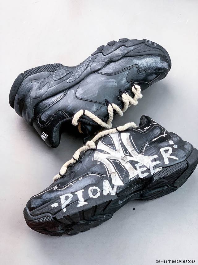 公司级[定制球鞋] Mlb纽约洋基队 潮流密码街头涂鸦喷绘手绘学院耐磨增高风低邦板鞋男女同款 该定制鞋选用原鞋为Mlb纽约洋基队厚底耐磨增高低帮板鞋,以涂鸦为灵感元素,鞋底个性的斑马线切割,更具街头动感。运用纯手工喷绘及手绘的工艺,街头涂鸦元素,复古与经典结合,碰撞出新的潮流。定制球鞋可以正常穿洗,穿着过程中尽量避免剧烈运动以及尖说的物体划伤,请避免用高浓度有机溶剂擦洗,清洗时建议使用柔软的毛刷配合浓度适宜的清洗剂轻轻刷洗。