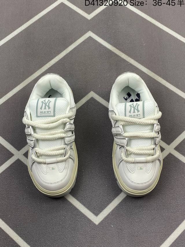 公司级 Mlb Chunky Liner Basic 人气单品学长鞋系列轻量增高厚底百搭休闲运动板鞋 男女轻便胶鞋 高级街头休閒品牌鞋。Mlb Chunky Liner 学长鞋是从击球手打出的酷炫直击球中获得灵感,在原有鞋面的皮革材质上,加入了反光滚边细节线,并延续高帮与低帮两种鞋型,为各路潮流选手开辟全新“少年感”动线。除了复古Style,也不乏这种颜色清新一些的款式,干干净净的少年感呼之欲出。