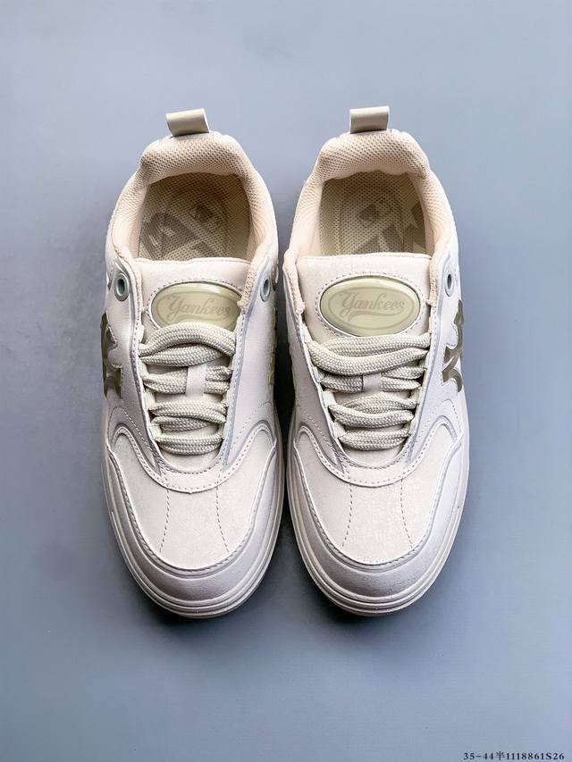 公司级!Mlb Chunky Liner 厚底休闲跑步鞋 Ny印花 牛皮材质运动鞋 1118861S26