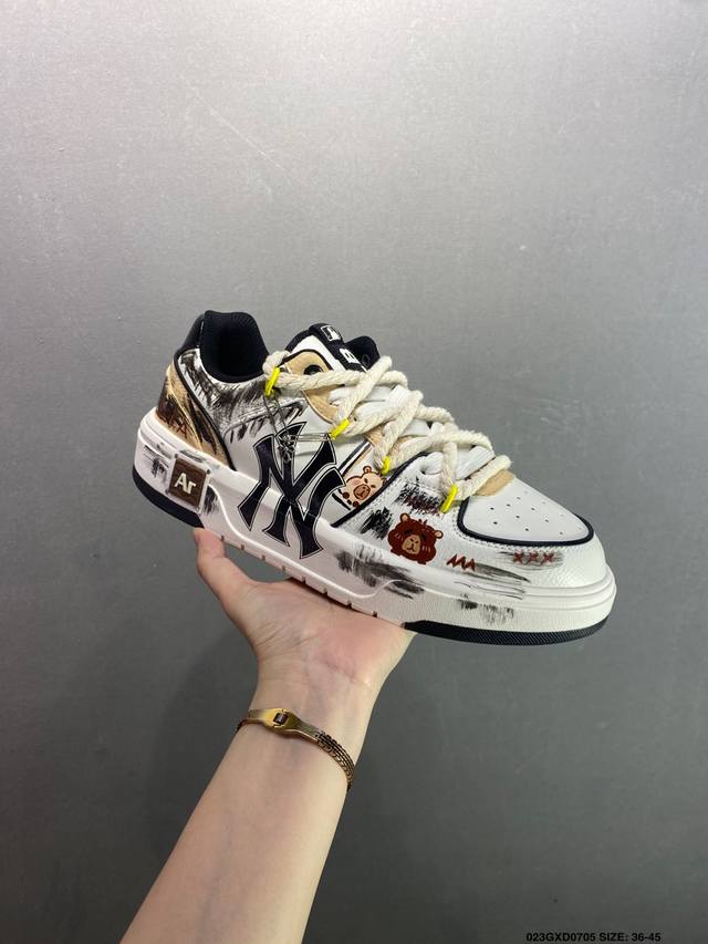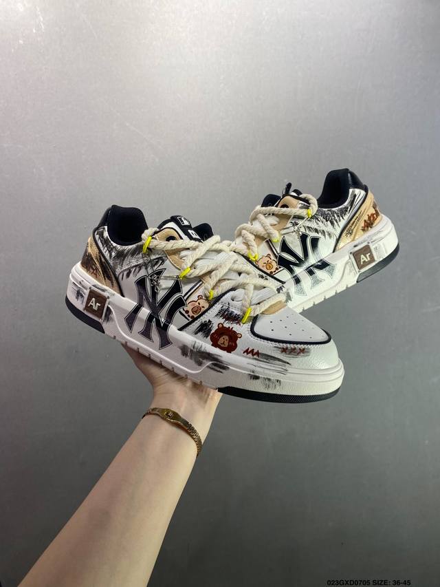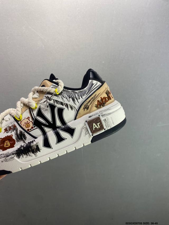310 公司级[定制球鞋] Mlb纽约洋基队 潮流密码街头涂鸦喷绘手绘学院耐磨增高风低邦板鞋男女同款...
