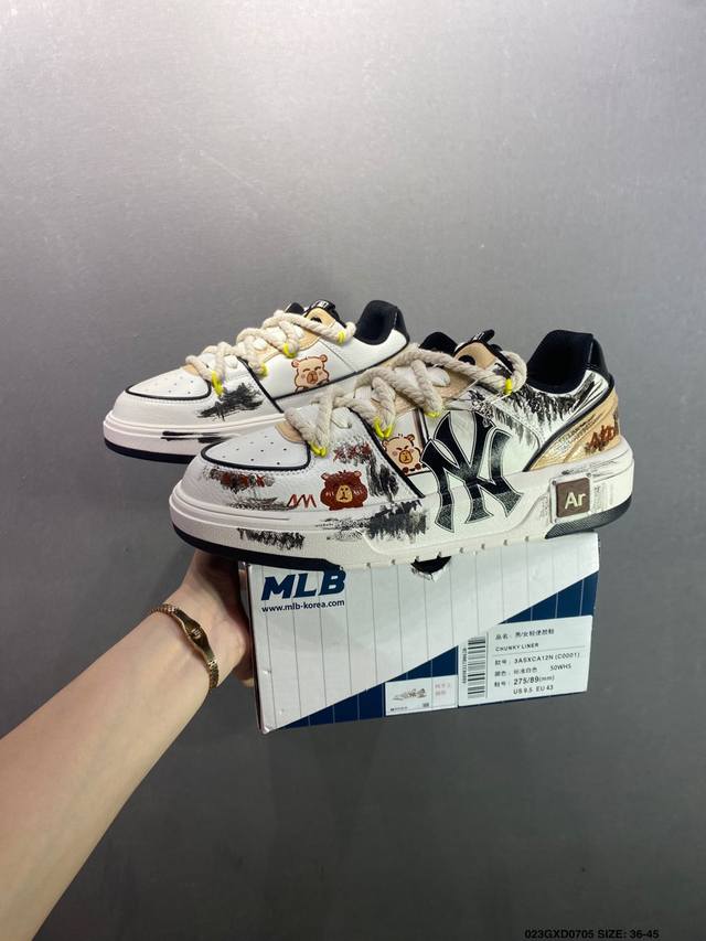 公司级Ss春季学院穿搭爆款Korea韩国限定,联乘Ny美国榄球洋基队 Mlb Chunky Liner New York Yankees学长鞋系列低帮老爹风轻量