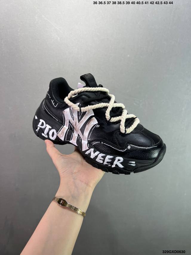 Mlb Ny 恶作剧印花网红老爹鞋 内增高6Cm 原厂原档案数据开发 进口纳米材质 原厂全套手提袋 原盒雷射防伪标包装 货号:3Asxca12N...
