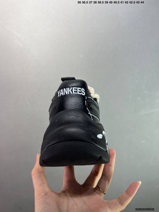 公司级!Mlb Chunky Liner 厚底休闲跑步鞋 Ny印花 牛皮材质运动鞋 0630334D25
