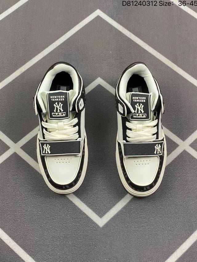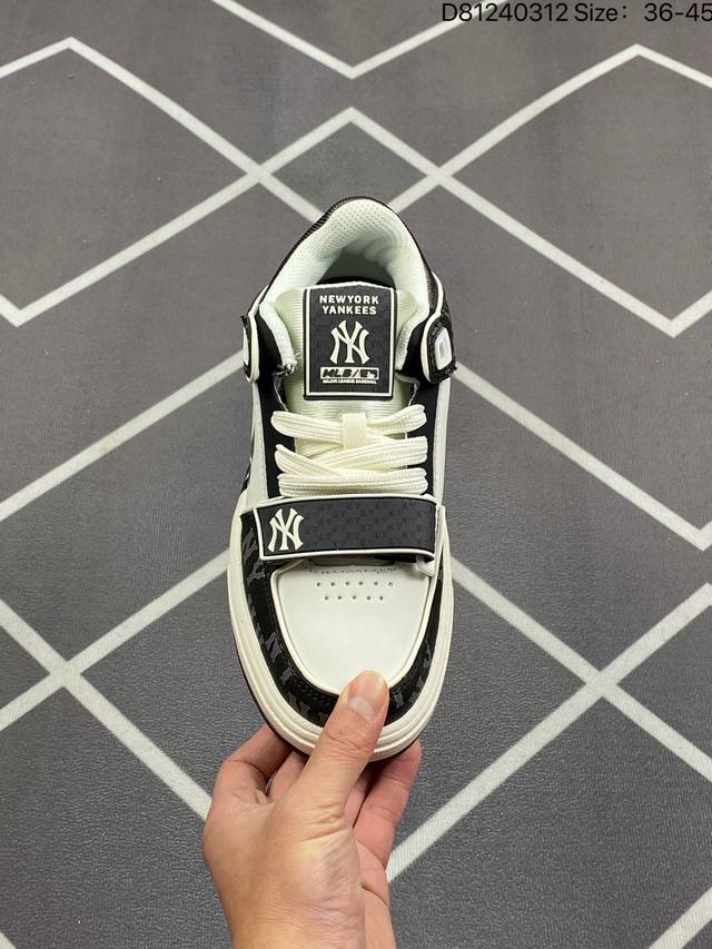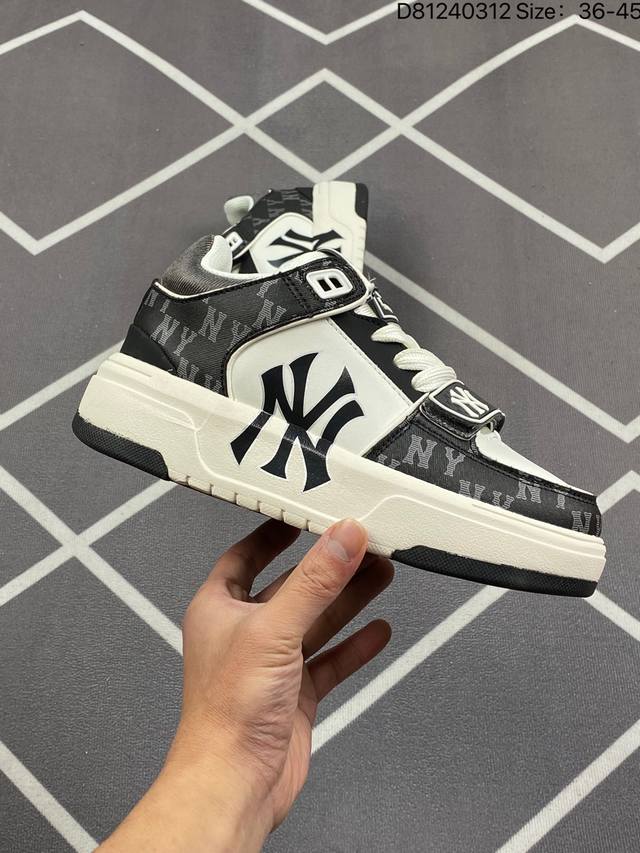 公司级Ss春季学院穿搭爆款Korea韩国限定,联乘Ny美国榄球洋基队 Mlb Chunky Liner New York Yankees学长鞋系列低帮老爹风轻量增高厚底百搭休闲运动慢跑鞋“皮革白黑Ny印花”3Asxcdn3N