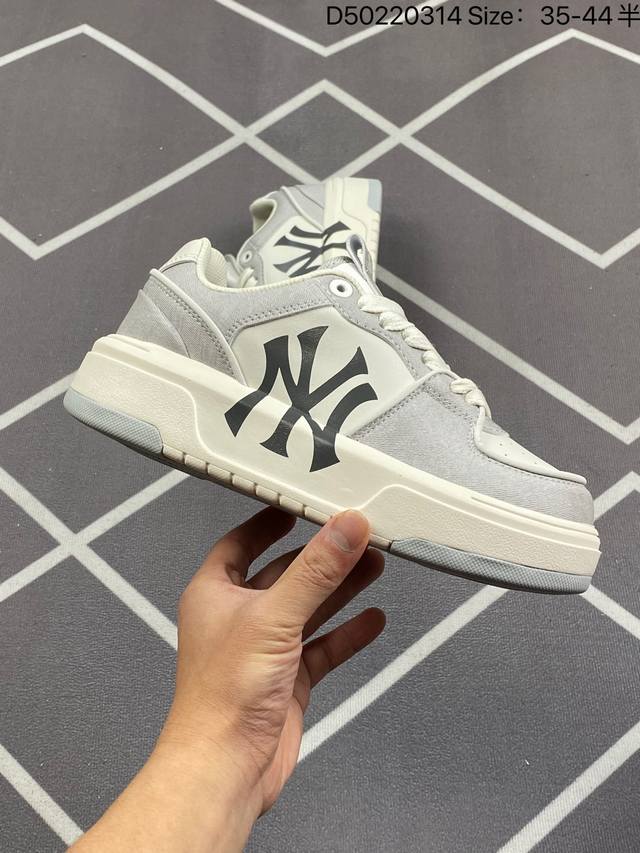 真标Korea韩国限定发售Ny美国榄球洋基队限定 X Mlb Big Ball Chunky Mesh 厚底老爹系列低帮网织轻量休闲运动慢跑鞋“网眼象牙白黑Ny印花”