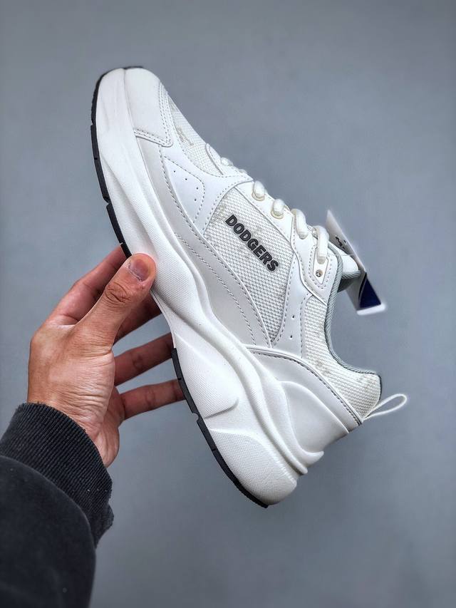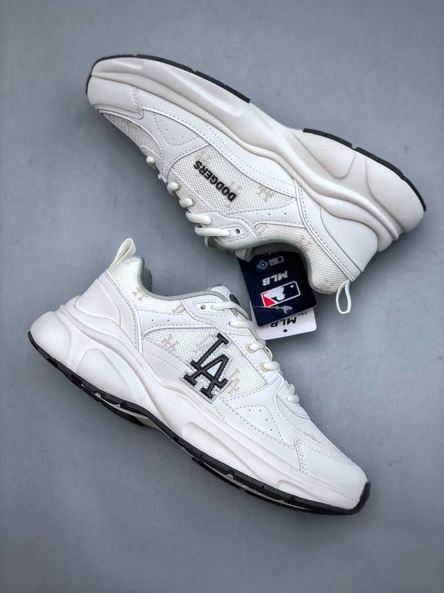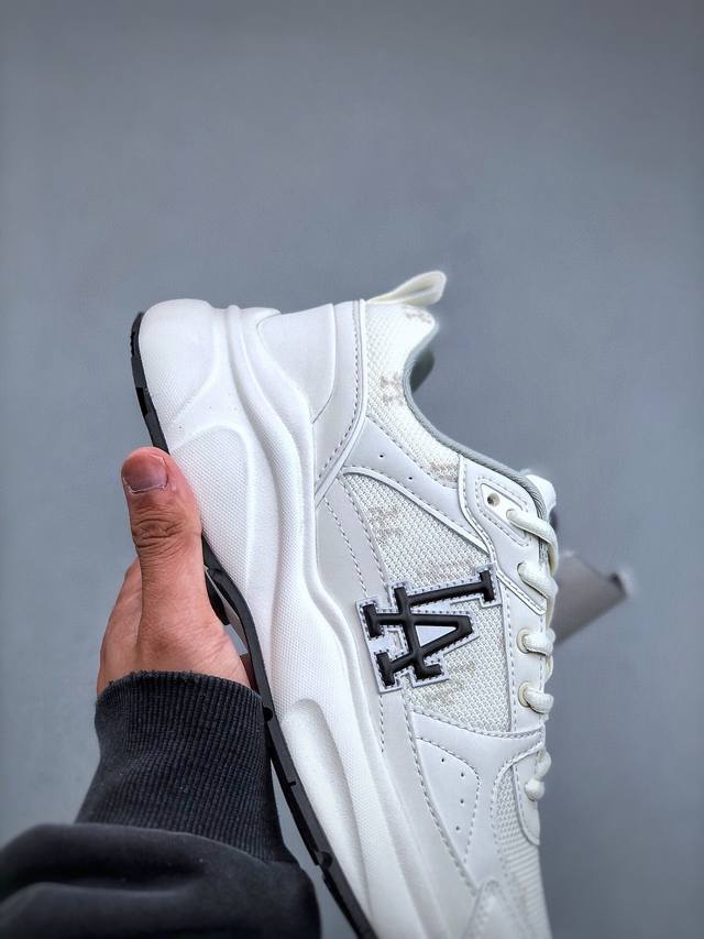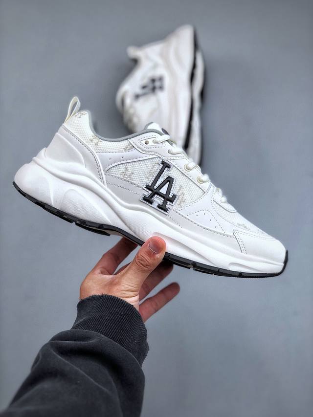 Korea韩国限定!联乘洛杉矶道奇队La Dodgers X Mlb Fastball Classic Monogram 快球系列低帮厚底老爹风休闲运动慢跑鞋“米白银黑La印面Logo”3Arnfsb4N
